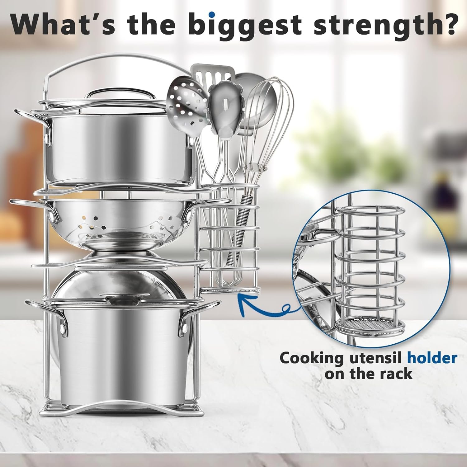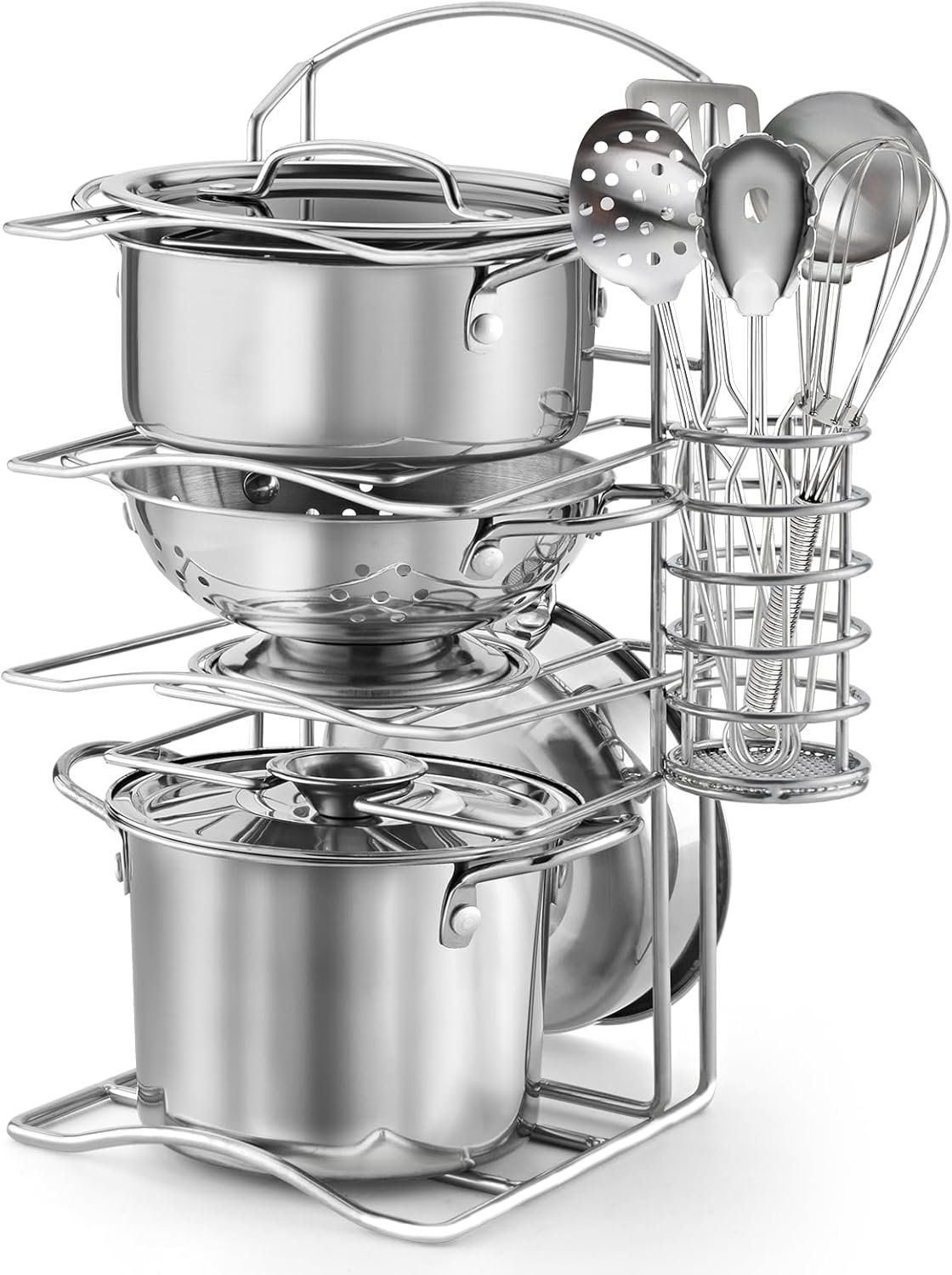 The product features a Draining Caddy on the Rack, which is convenient for placing utensils. Additionally, we provide more utensil (A total of 5 utensil) that can be used for different types of cooking scenarios.