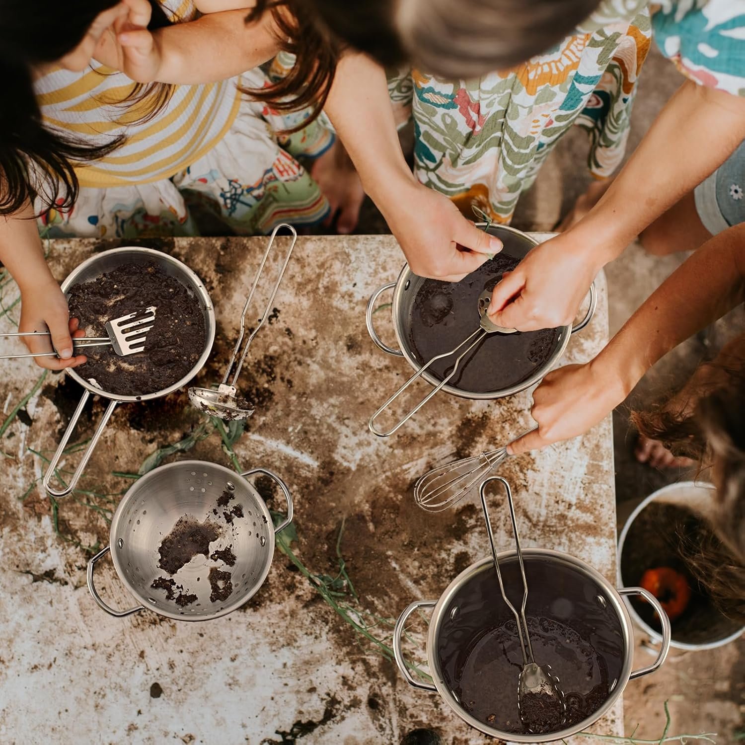 The utensils are around 8~9in in length, and the pots & pans are ranging from 6.5~8.5in. The dimensions are designed to fit comfortably in a child’s hand. You can also refer to the real-scale images for a better understanding.