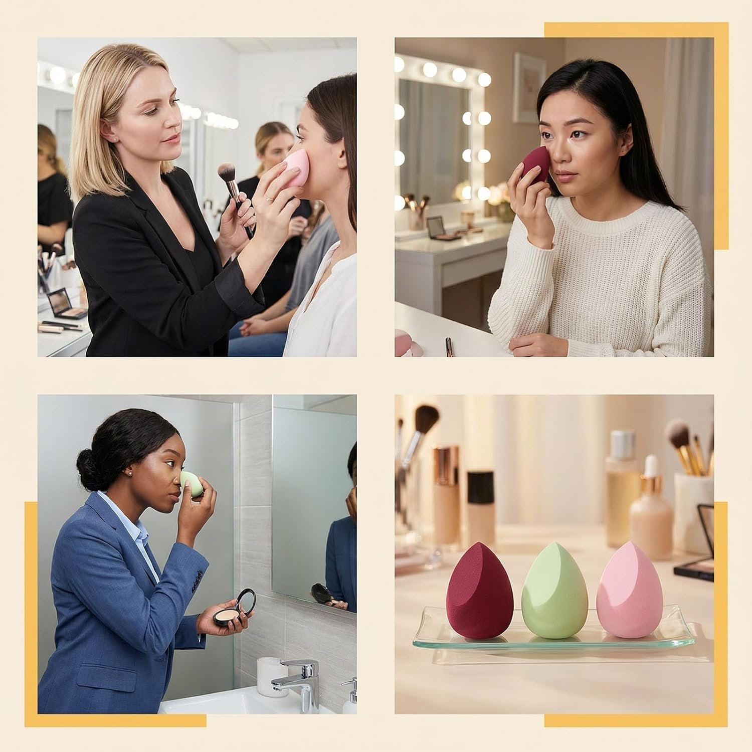 【Use wet or dry for flawless, streak-free application】Our Makeup Sponge Set is engineered for seamless wet or dry application—perfect for liquid, cream, or powder foundations. When dampened, the sponge expands slightly to deliver a airbrushed, streak-free finish with minimal product absorption. When used dry, it provides buildable coverage ideal for setting powder or touch-ups. Designed to adapt to your routine, this dual-functionality ensures flawless results every time, whether you’re rushing out the door or prepping for a night out.