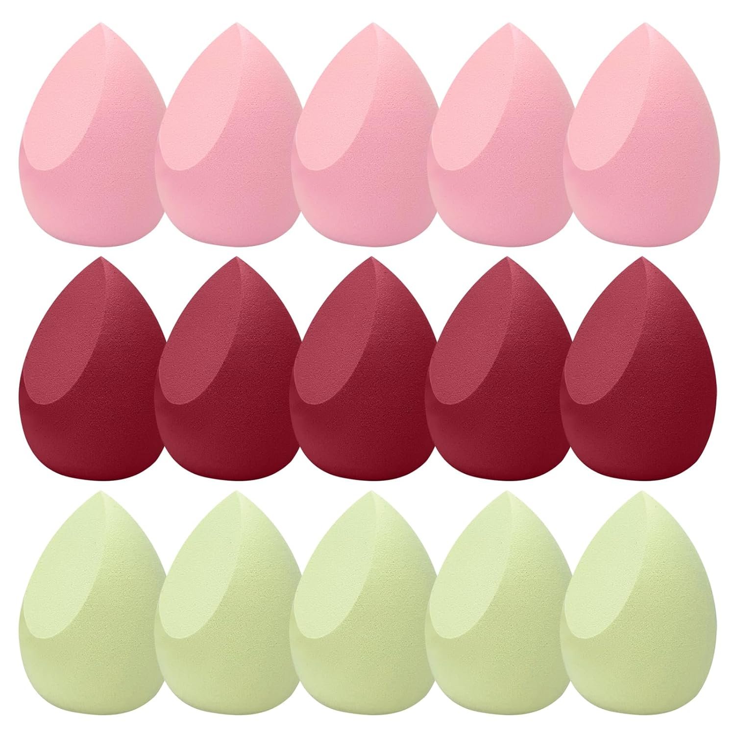 【Premium Makeup Sponge Set】15-piece set (5 pink, 5 burgundy, 5 avocado green) Experience flawless application with our Makeup Sponge Set, designed for perfectionists who crave seamless blending. Each sponge is crafted to deliver even coverage, making your makeup routine effortless and professional. Ideal for all skin types, this set ensures every stroke counts towards a radiant look.