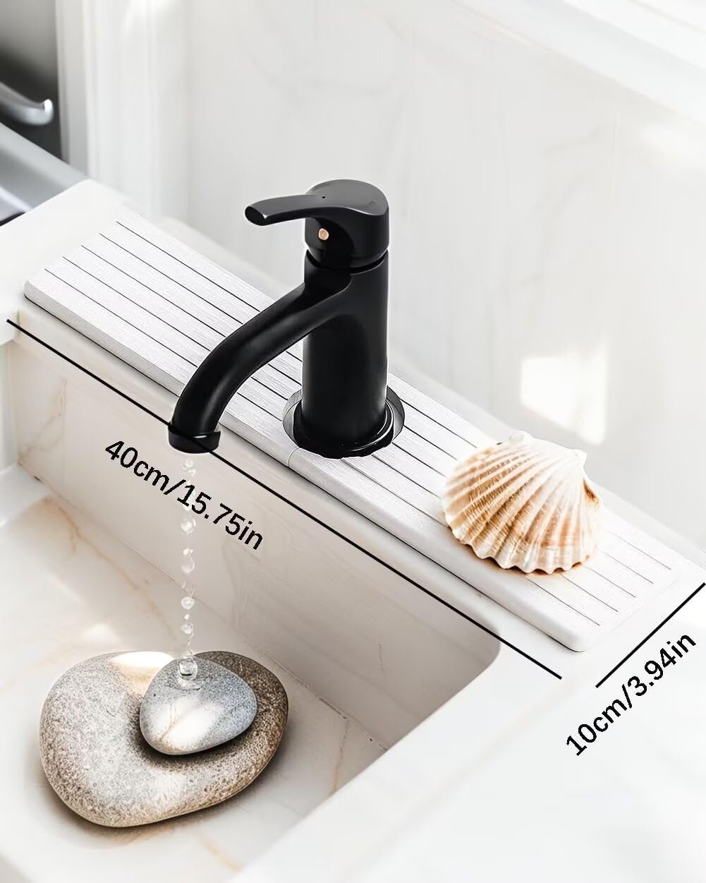 Upgrade your sink and use our stone faucet mat! Using diatomite material to protect the countertop from scratches and water stains. Easy to clean and stylish, keep your kitchen dry and tidy. Small embellishments create a cleaner sink area!