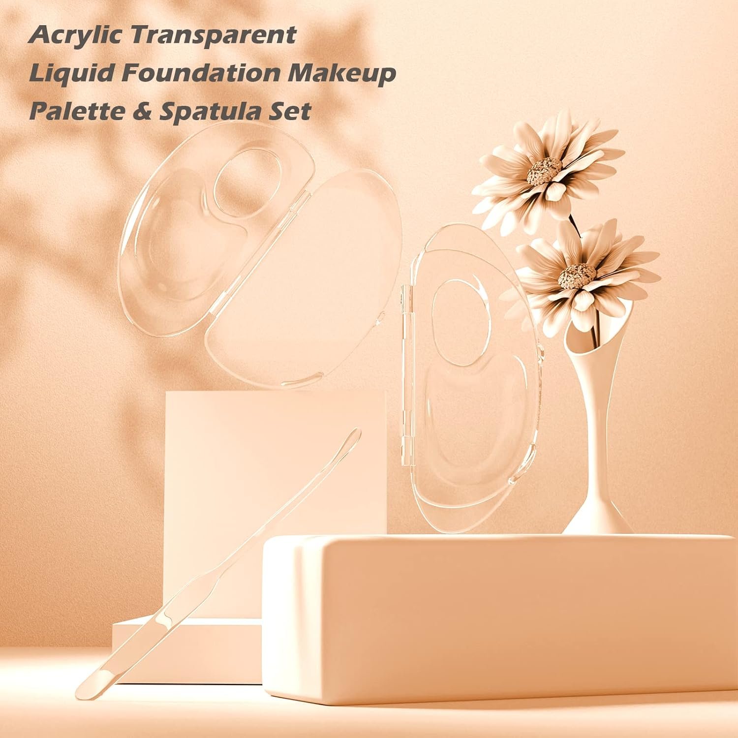 💄【Reliable Material】Acrylic makeup mixing tray and transparent foundation spatula are made of acrylic material, the empty makeup palette is comfortable to hold, the edges are delicate and smooth without hurting hands, and the acrylic makeup spatula tool fits the curvature of the eyes, which is more suitable for adjusting makeup. easy to keep clean from blending colors and easy to clean.