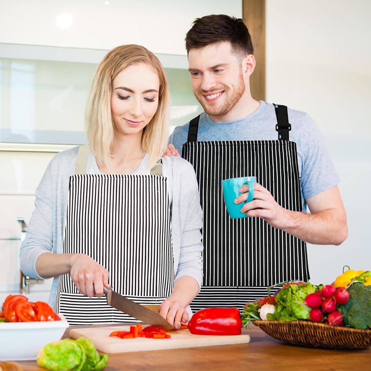 Home » Shop » 2 Pack Aprons for Women with Pockets, Kitchen Cooking Apron for Men, Adjustable Apron Suitable for Chefs, Waiters, Baking, and Nail Technicians