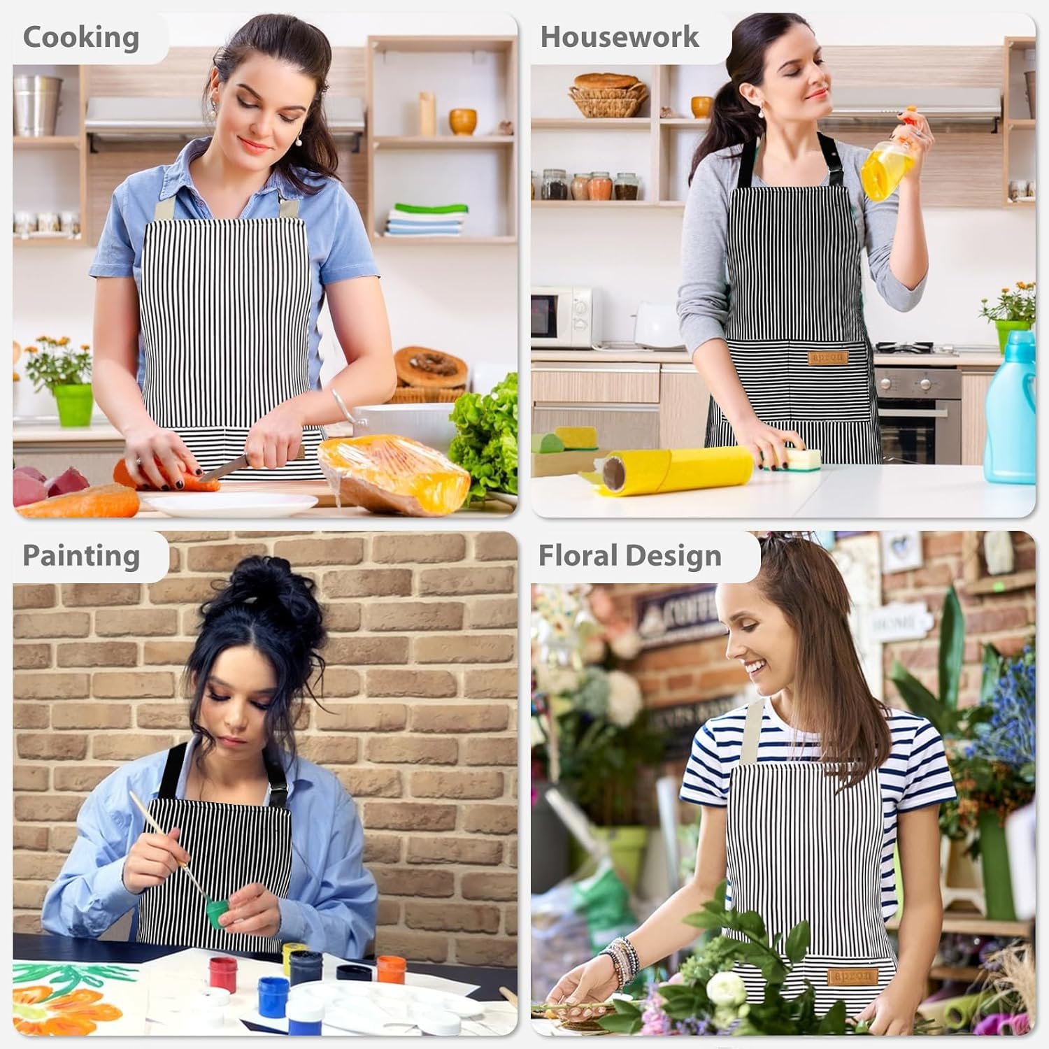 2 Pack Aprons for Women with Pockets, Kitchen Cooking Apron for Men, Adjustable Apron Suitable for Chefs, Waiters, Baking, and Nail Technicians
