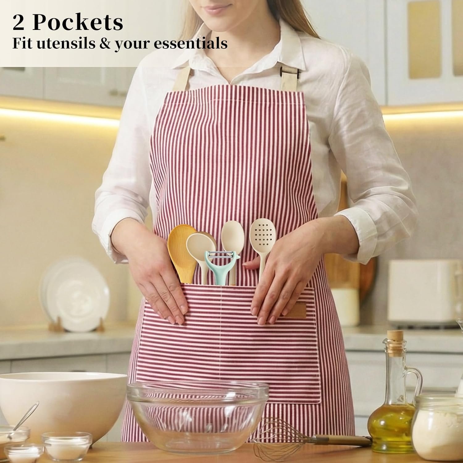 ARBINSON Cotton Polyester Blend Kitchen Pinstripes Aprons