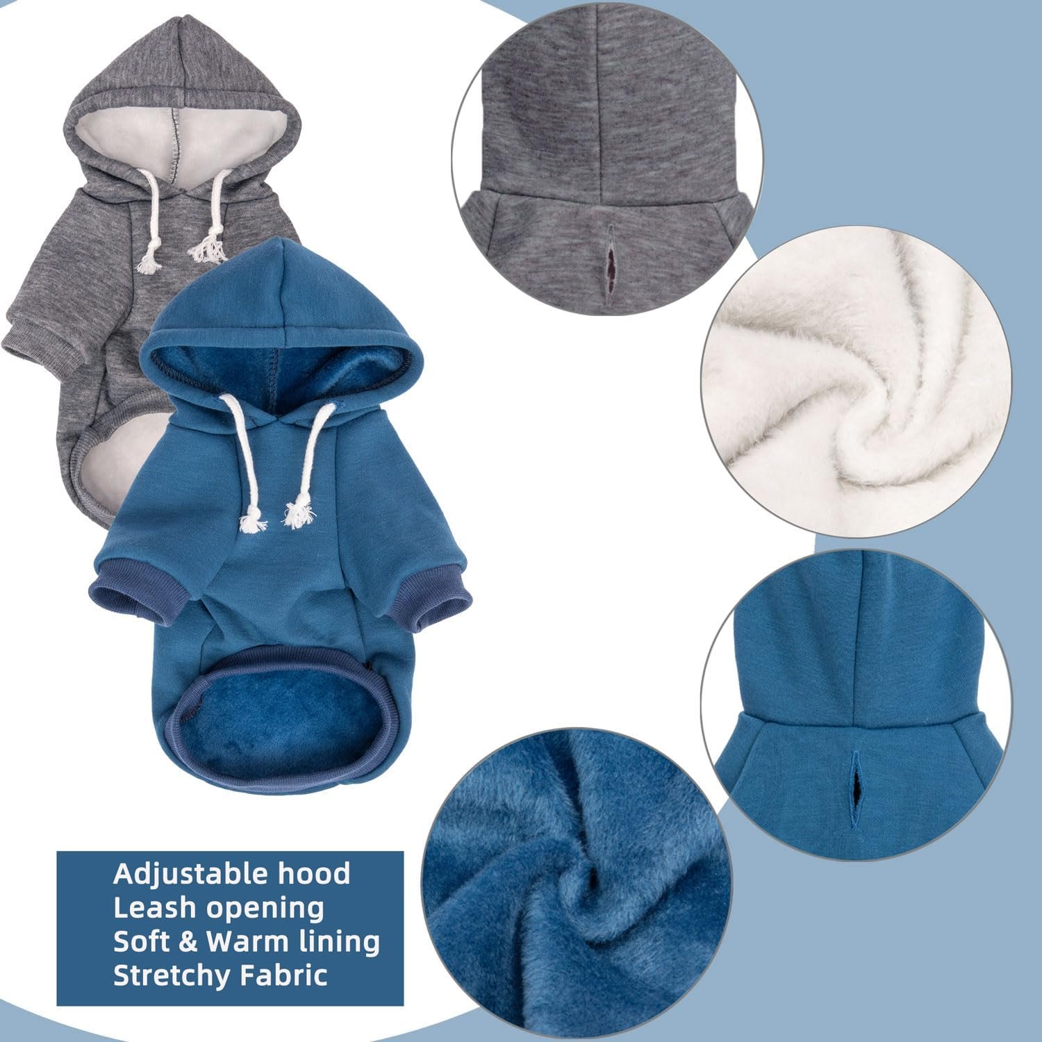 Multi-pack Value: Each package includes 2 hooded dog sweaters, in 2 coordinating colors. Pay for one pack, and you’ll get two dog hoodies in different colors !