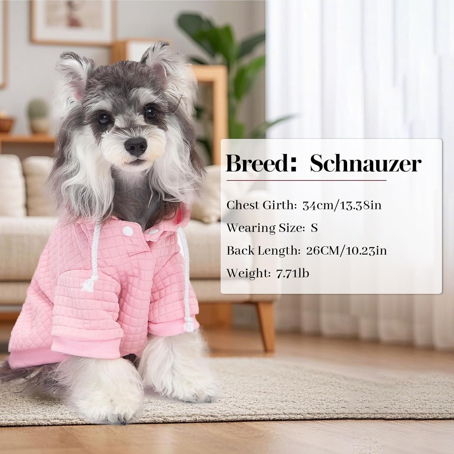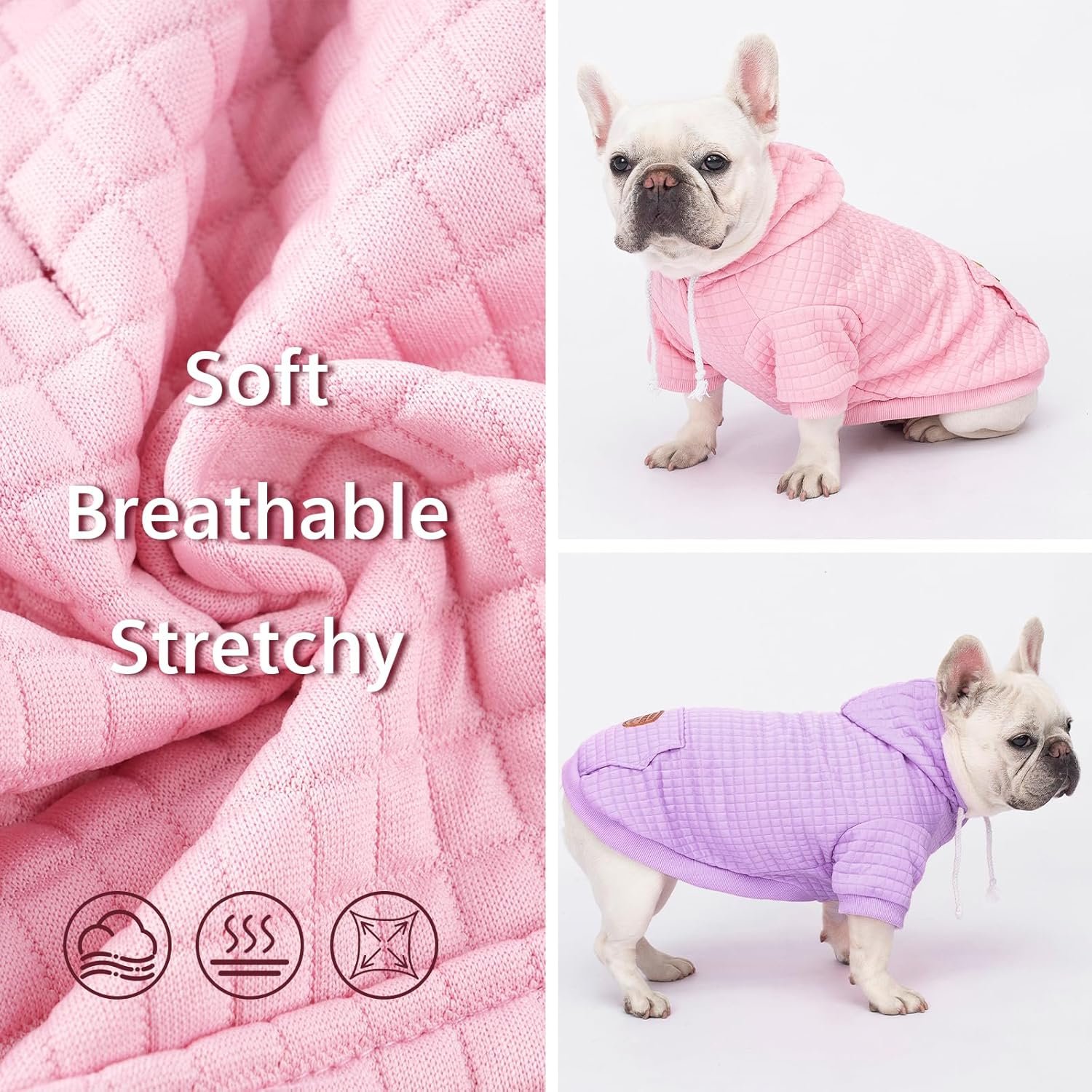 STRETCHY & BREATHABLE FABRIC: Made from a 95% polyester and 5% spandex blend, this dog hoodie keeps your pup warm. The soft, skin-friendly fabric is friendly to dogs.While the wrinkle-resistant and quick-drying material makes the dog clothes super easy to care for. With 20-30% stretch,this puppy sweater comfortably fits different body shapes, moving with your dog without restricting play