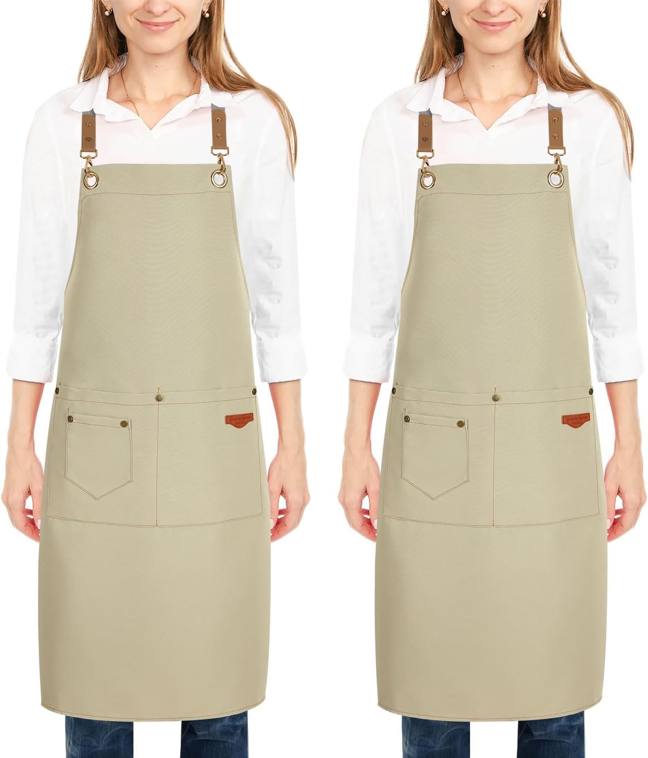 2 Pack Kitchen Cooking Aprons, Adjustable Bib Soft Chef Apron with 2 Pockets for Men Women