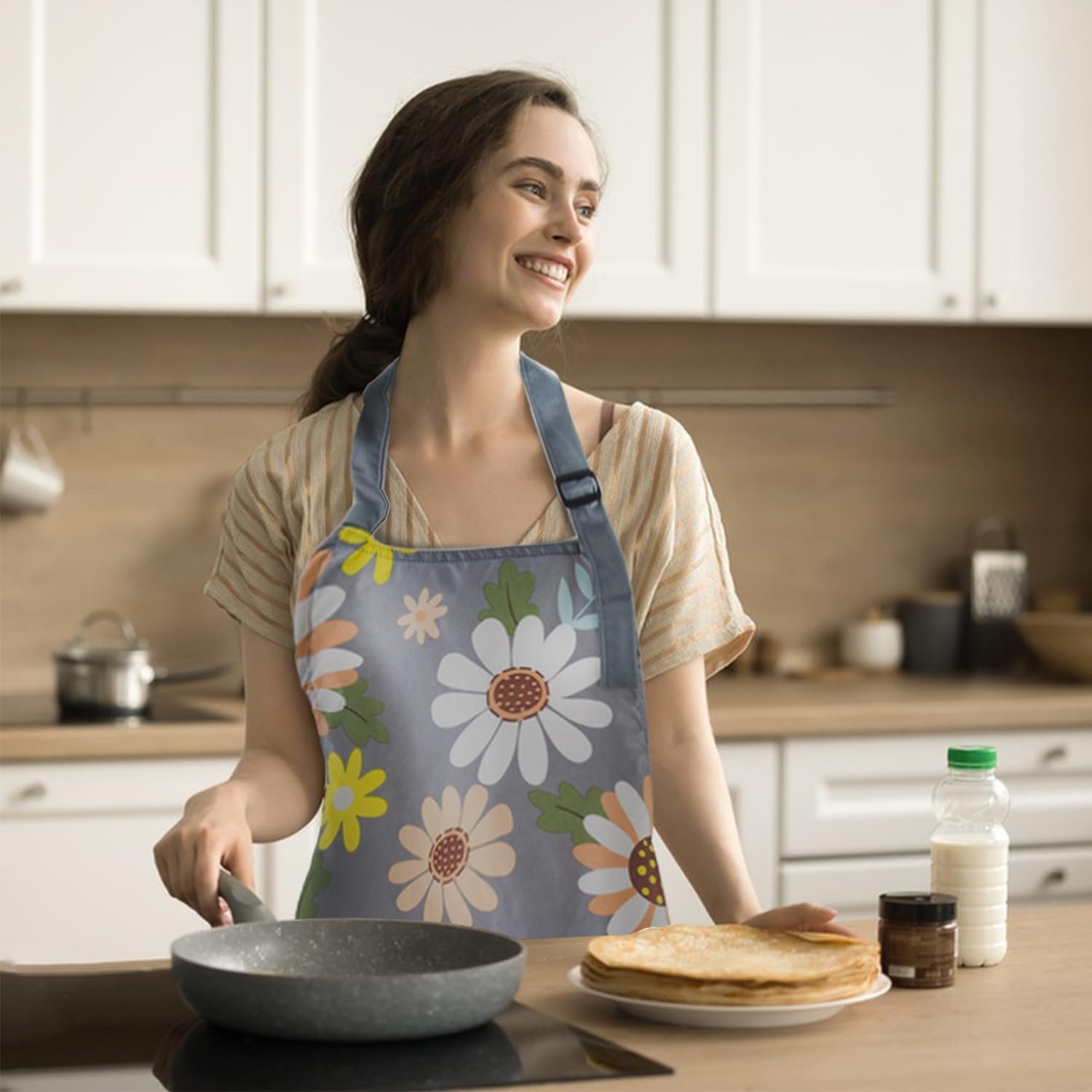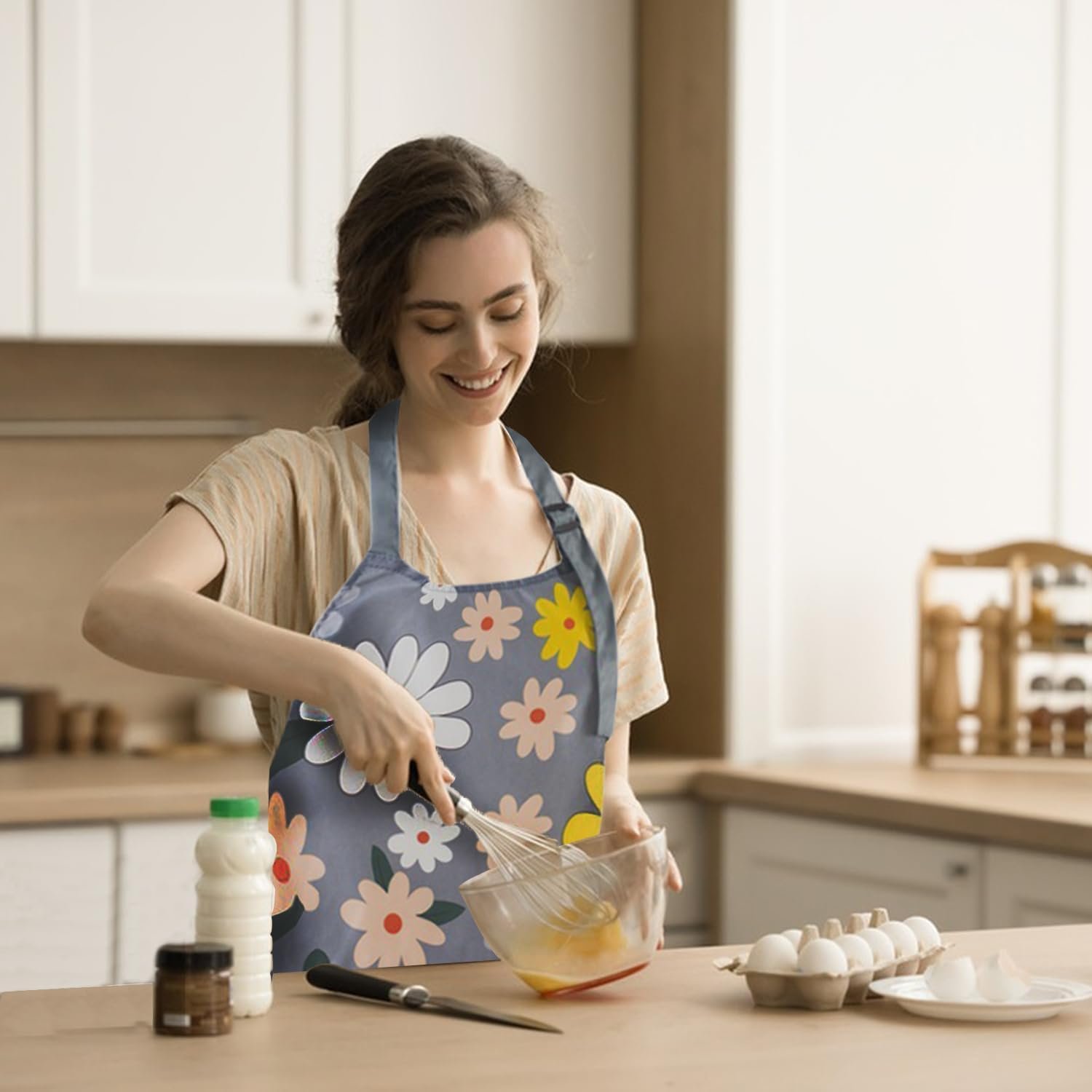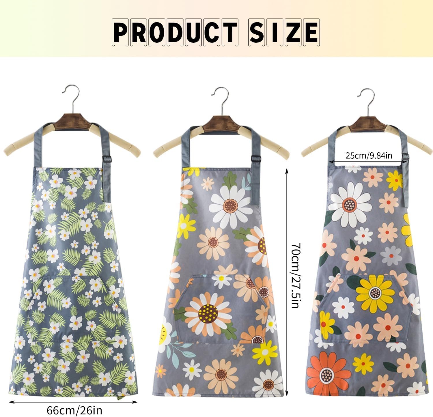 3 PCS Floral Aprons with Pockets, Womens Waterproof Apron with Adjustable Cooking Aprons,Chef Aprons for Cooking, Baking, Gardening, BBQ & Grill