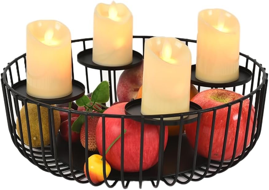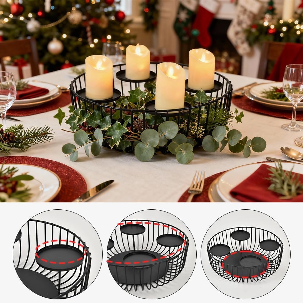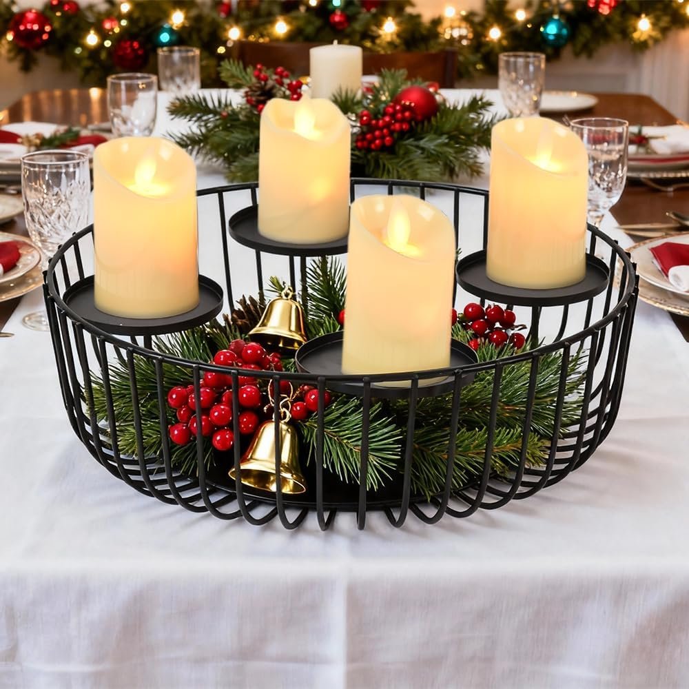 1. Modern Matte Black Design & Versatile Table CenterpieceThis 4-tray candle holder features a sleek matte black wire basket design, blending modern aesthetics with timeless functionality. As a stylish pillar candle holder, it elevates any space—perfect as a dining table centerpiece, fireplace mantel decor, or accent piece for living rooms, entryways, and more. The open wire structure adds a light, airy feel while securely holding candles, making it an ideal candle stand for both everyday use and special occasions.