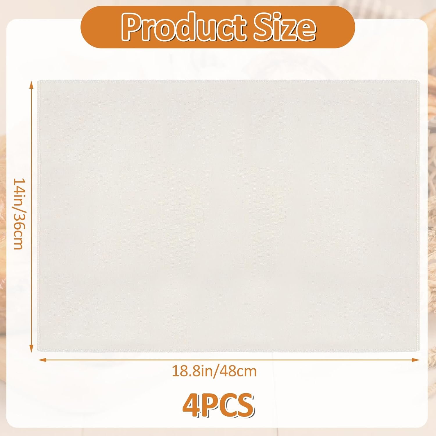 Product Details: You get 4 pcs tea towels, each measuring 14×18.8 inches (36×48 cm), providing enough space to cover the bread bowl and make multiple loaves at once