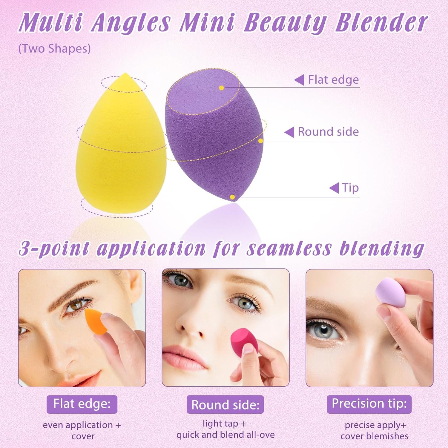 【Wide Application】Mini makeup sponge set is very suitable for various cosmetics. can be used dry or wet to make your makeup tighter and more compliant. Dry can be used for powder, eye shadow, contour powder, blush, wet for liquid foundation, concealer, and sunscreen.