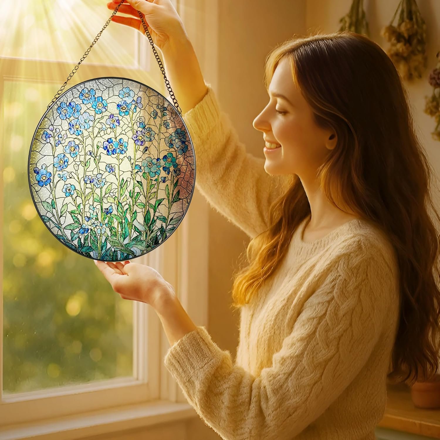🌸Home Decoration: Brighten your home with our stained glass suncatcher! When hung in a window or near a light source, it captures natural light and transforms it into a dazzling display of colors, to brighten your home, garden, or patio. Its timeless beauty and craftsmanship make it an ideal decoration for anyone who appreciates art, nature, and the magic of light.