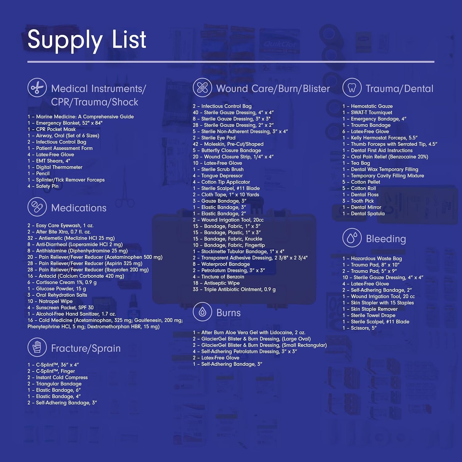 Trauma Ready: Equipped with hospital-quality tools to manage severe bleeds, fractures, and hypothermia, making this an ideal marine survival kit for sailboats, cruise ships, yachts, commercial fishing vessels, and other large ships