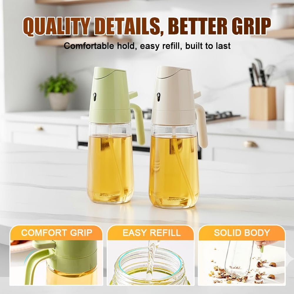 đŸ„ƒă€2 in 1 Glass Oil Sprayer & Dispenser】Experience the convenience of our ingenious 2-in-1 kitchen tool, our olive oil dispenser bottle with a built-in enhanced spray nozzle, lets you pour oil with a single hand, and you can switch the spray and oil pouring functions at any time, making cooking a breeze! A must-have tool for any home cook.