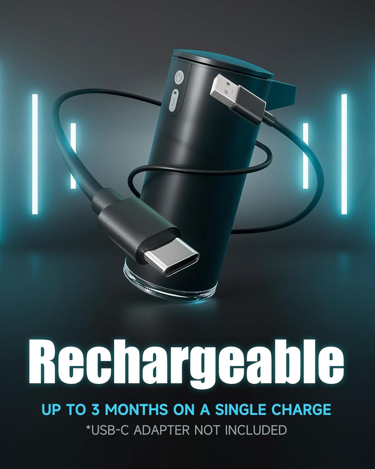 Say Goodbye to Batteries – Enjoy universal Type-C charging, one full charge powers up to 12,000 dispenses and lasts around 3 months with light household use