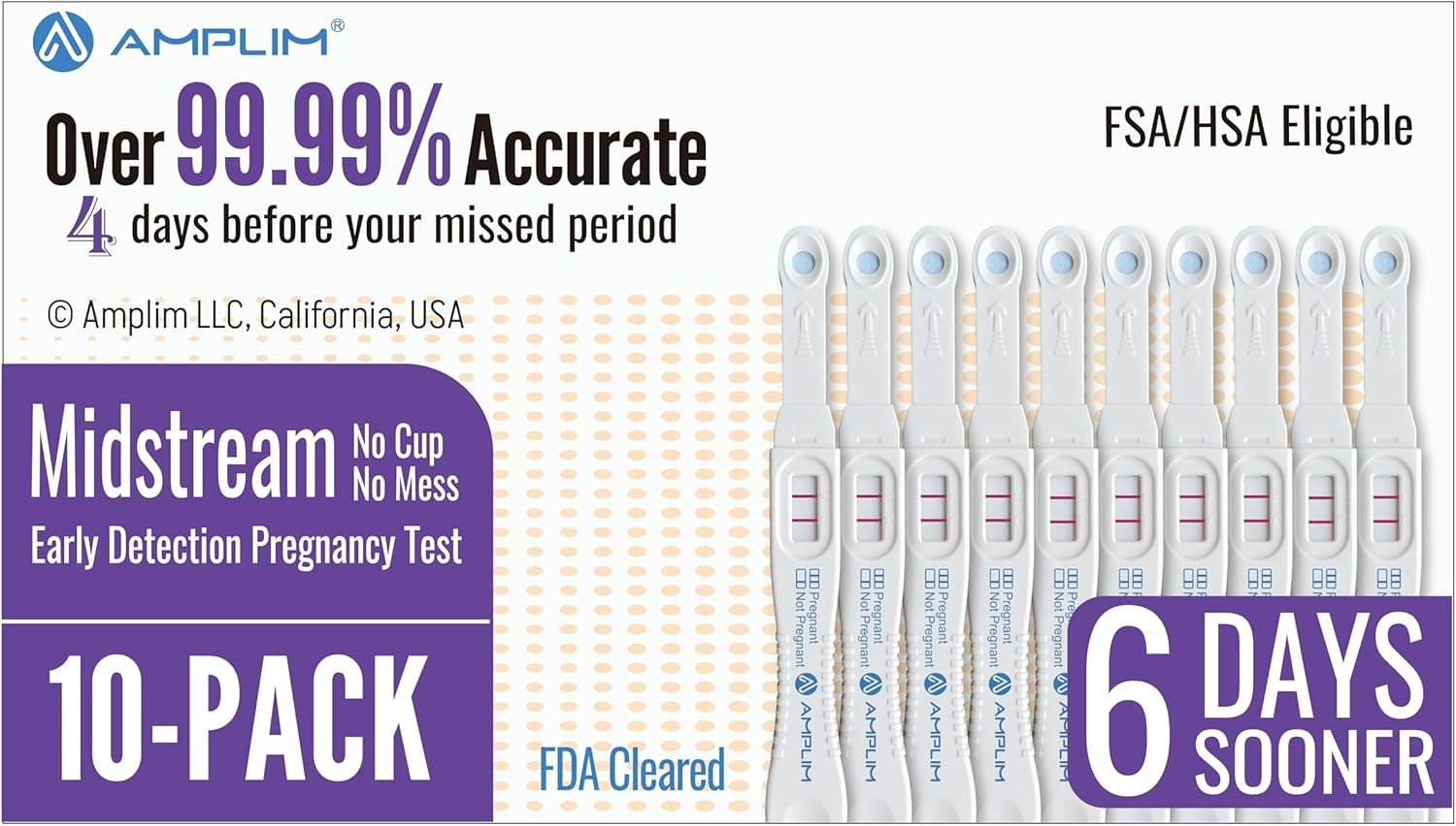 Amplim Midstream Pregnancy Test Stick, HCG Early Detection 6-Days Sooner, Extra Sensitive 10 MIU/mL 99.99% Accurate Result, 2-Sec Easy Home Tests, 10 Pack