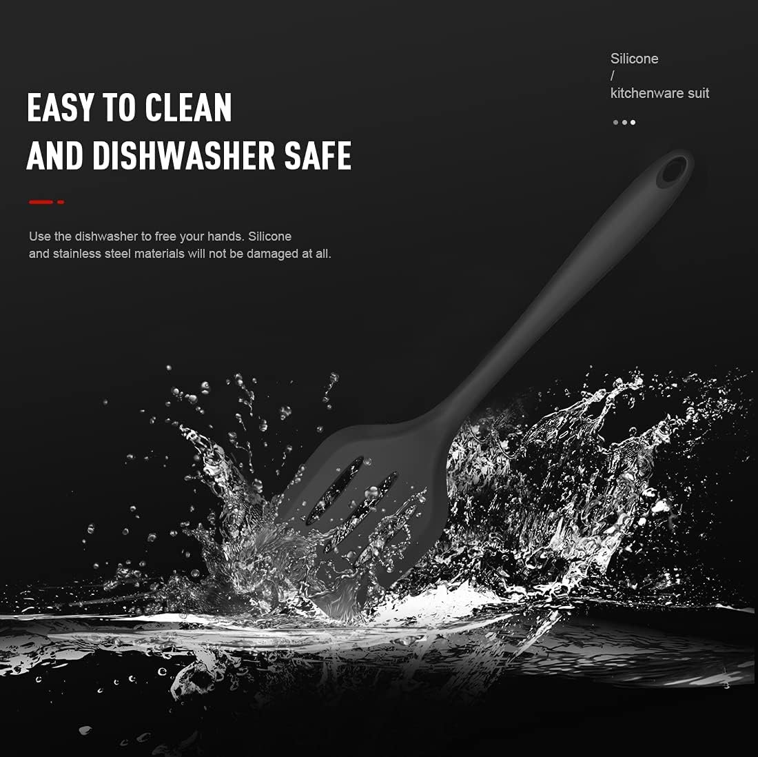 One-piece molding without any gaps to capture food, Make cleaning very easy. You completely leave the cleaning job to the dishwasher. Easily release our hands.This is different from many silicone cooking utensils