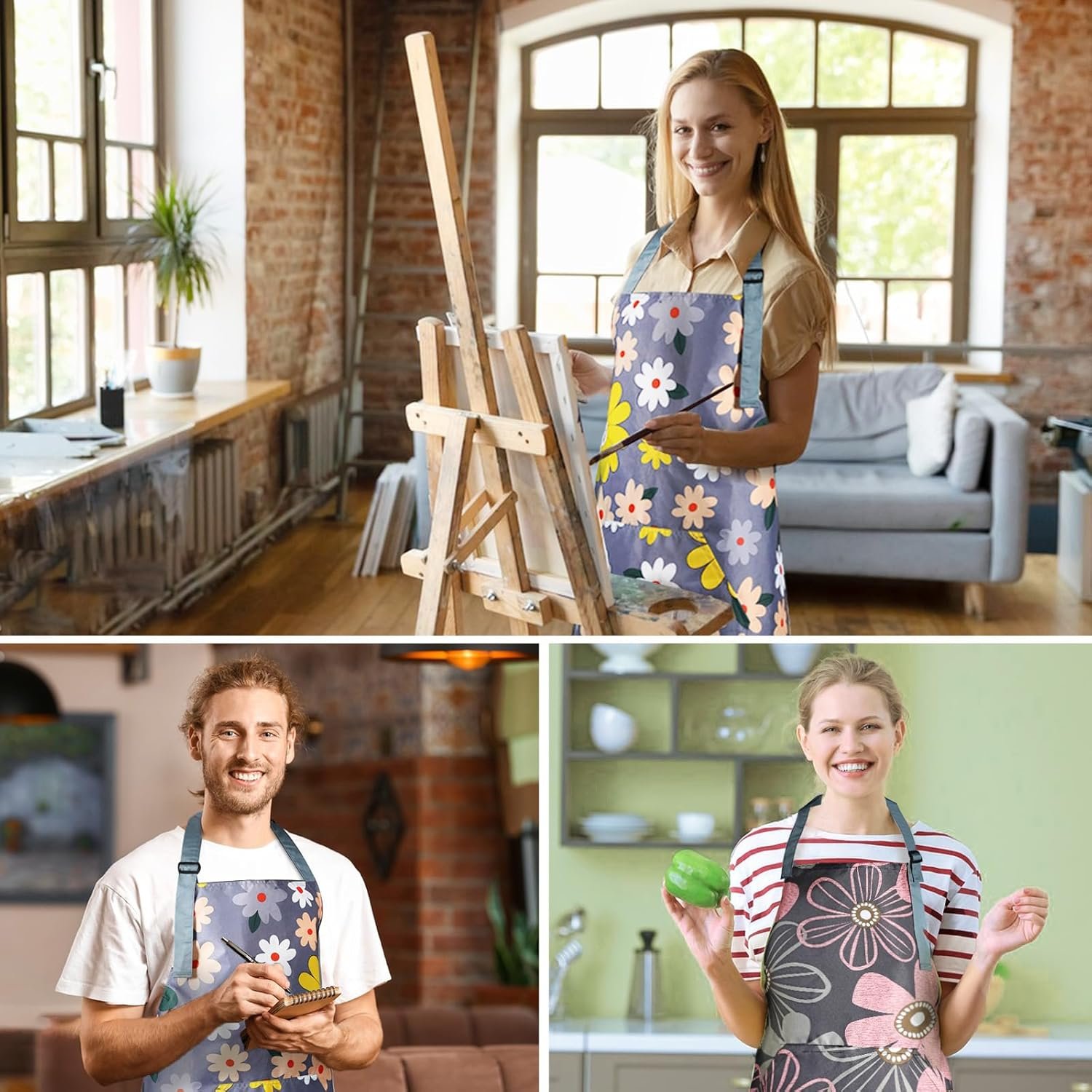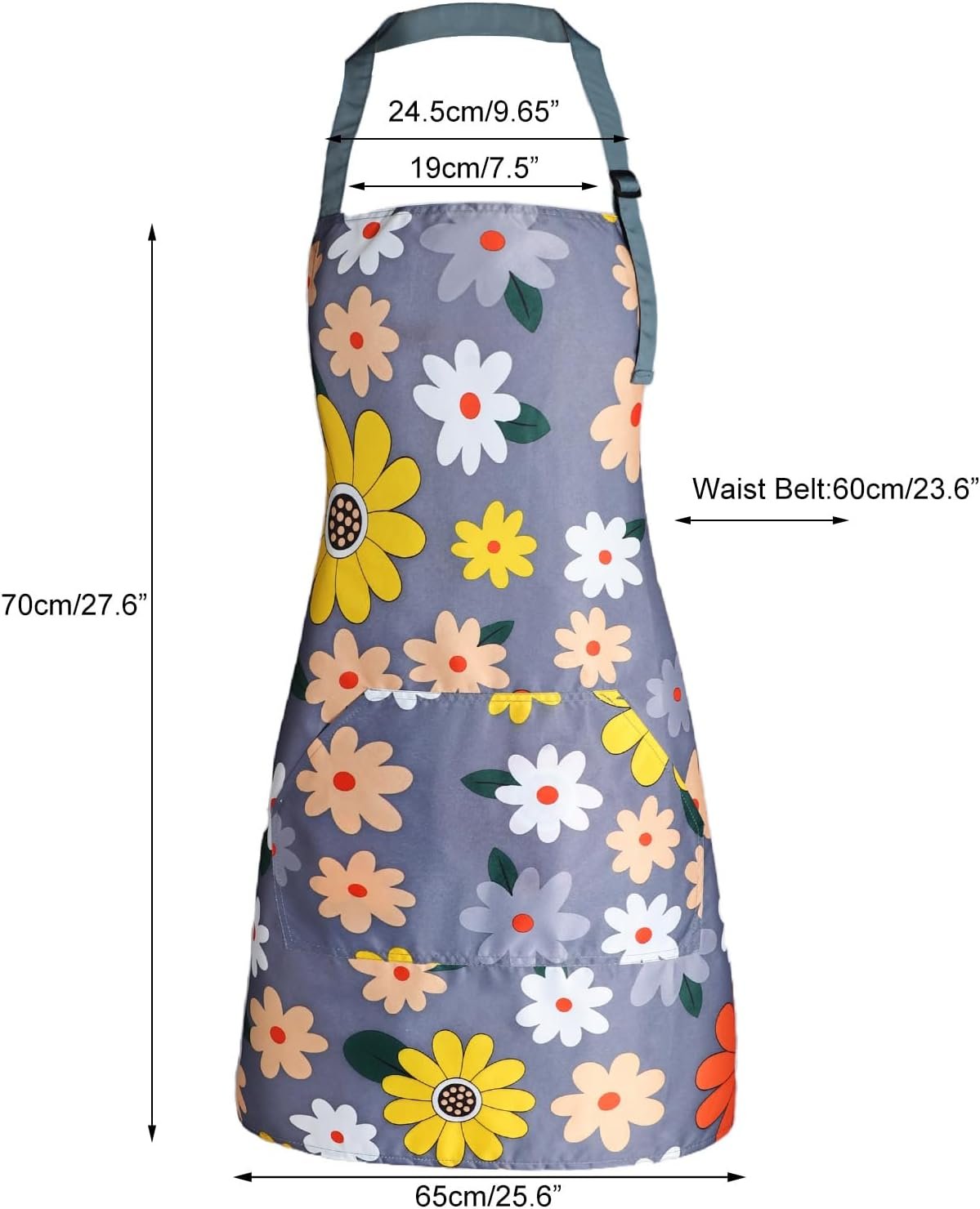 Apron for Women with Pockets, Adjustable Waterproof Floral Chef Aprons for Kitchen, Gardening, Cooking, BBQ or Baking