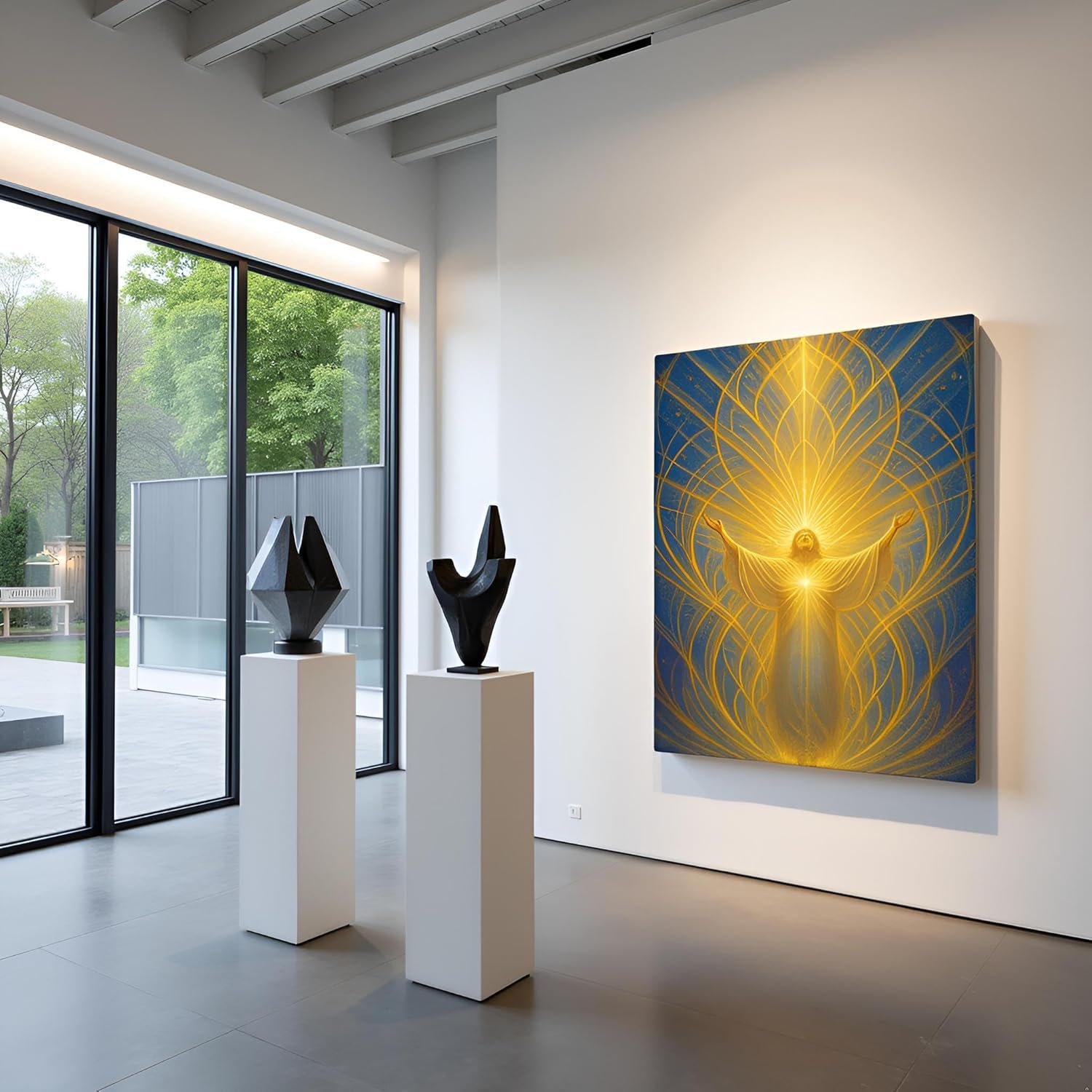 Rebirth of Light is not a decorative object; it’s a presence. It reinforces the feeling of stepping into your higher posture — the mental stance where decisions become clearer, energy becomes cleaner, and your direction becomes sharper. This artwork belongs in environments where people want to think better, feel steadier, and operate at a higher level: offices, studios, meeting spaces, personal development rooms, meditation areas, or anywhere focus needs to be strengthened.