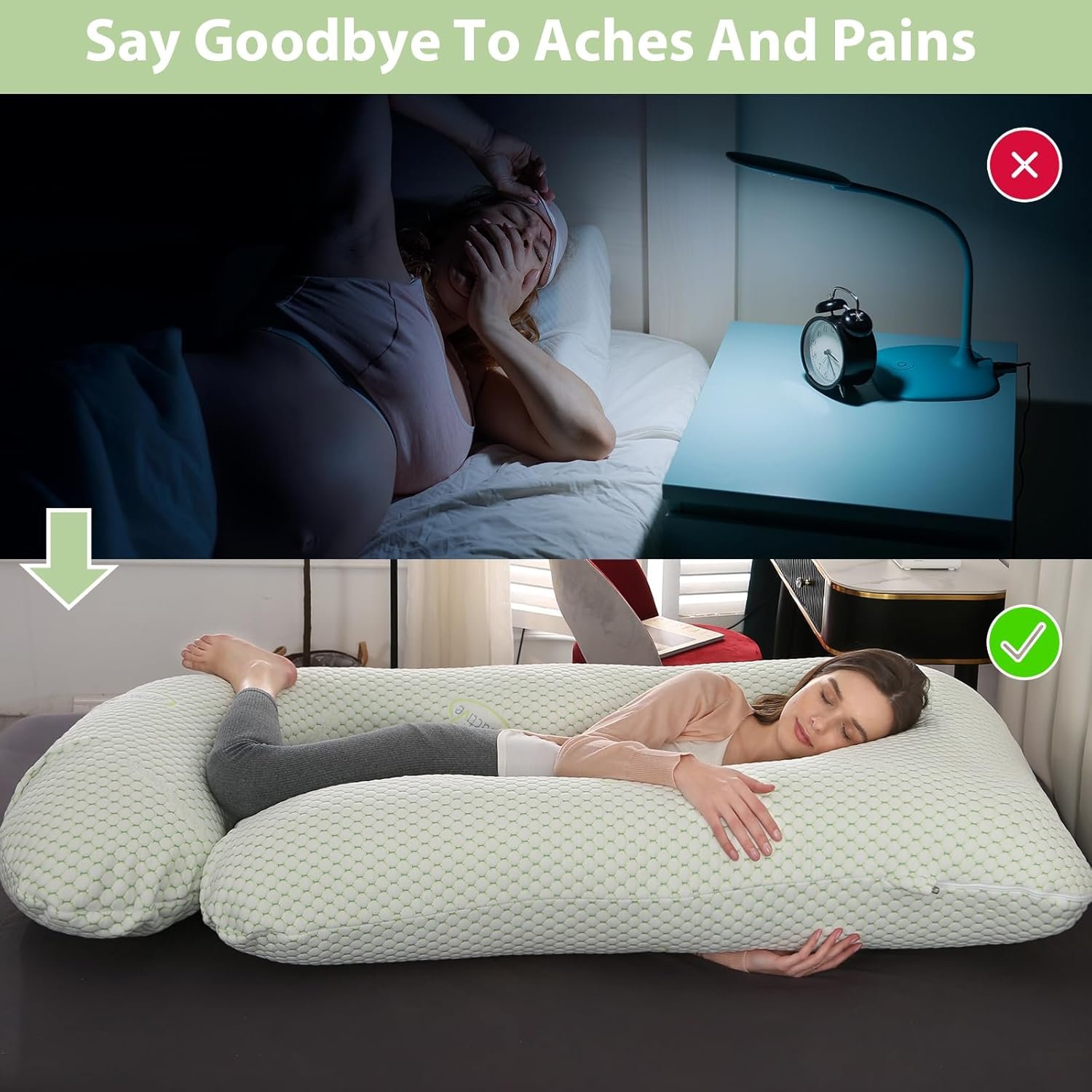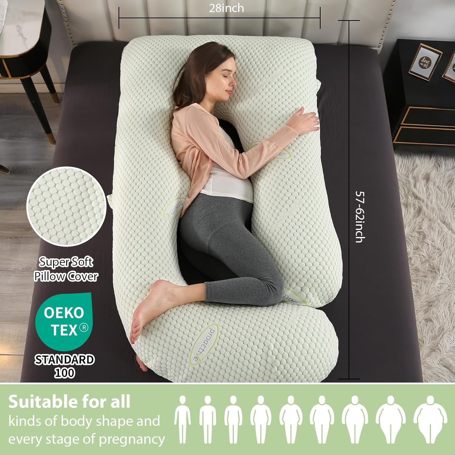 INNOVATIVE DESIGN U-SHAPE BODY PILLOW – Cradles your growing belly to reduce ligament strain , Aligns your spine with proper back support. Prevents hip pain with strategic cushioning, Elevates legs to improve circulation.
