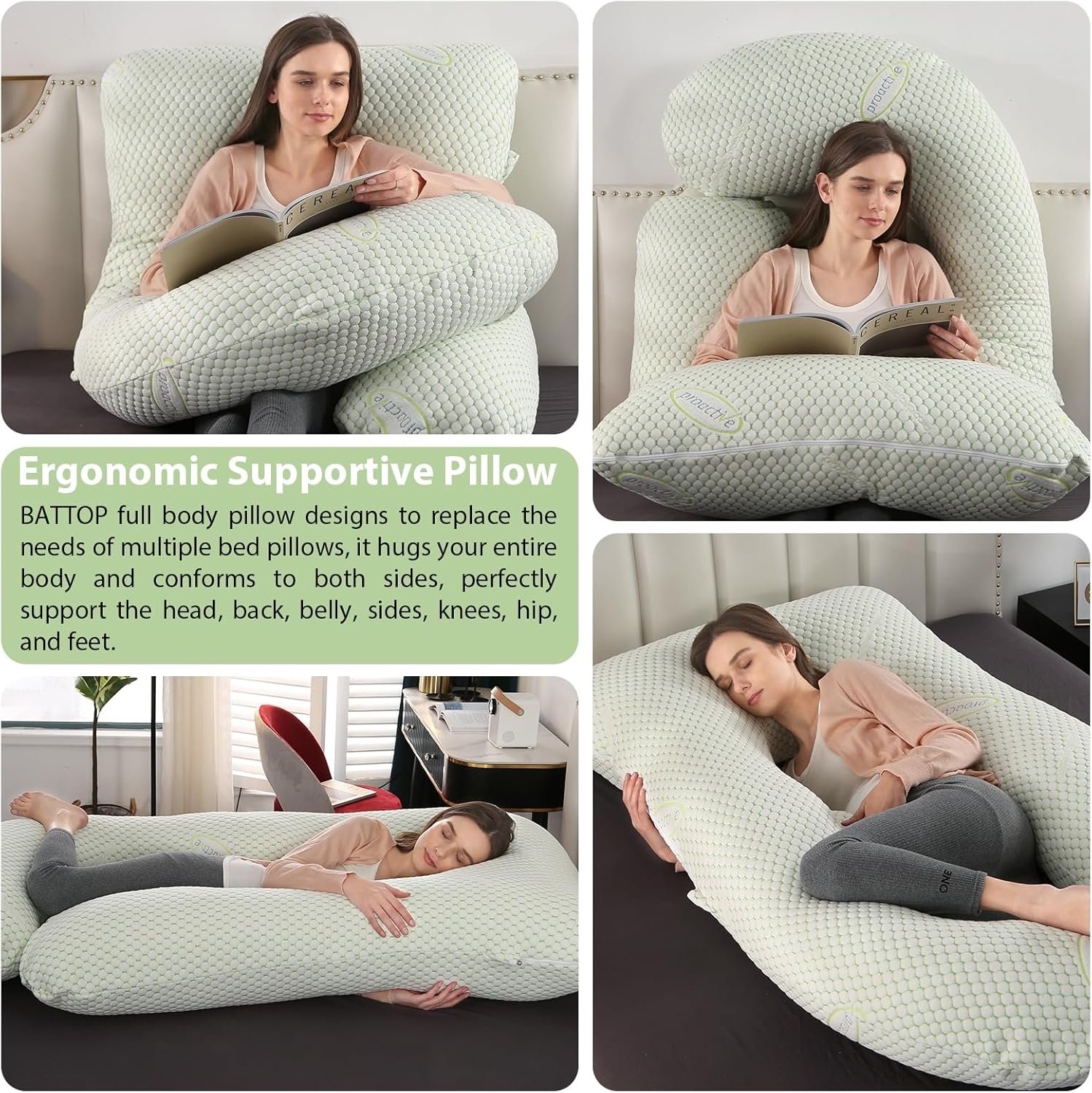 360° PREGNANCY SUPPORT – Ergonomically designed U-shape cradles your belly, relieves back/hip pressure, and prevents awkward sleeping positions for better rest. BATTOP Pregnancy Body Pillow provides the perfect balance between comfort and support for your full body.
