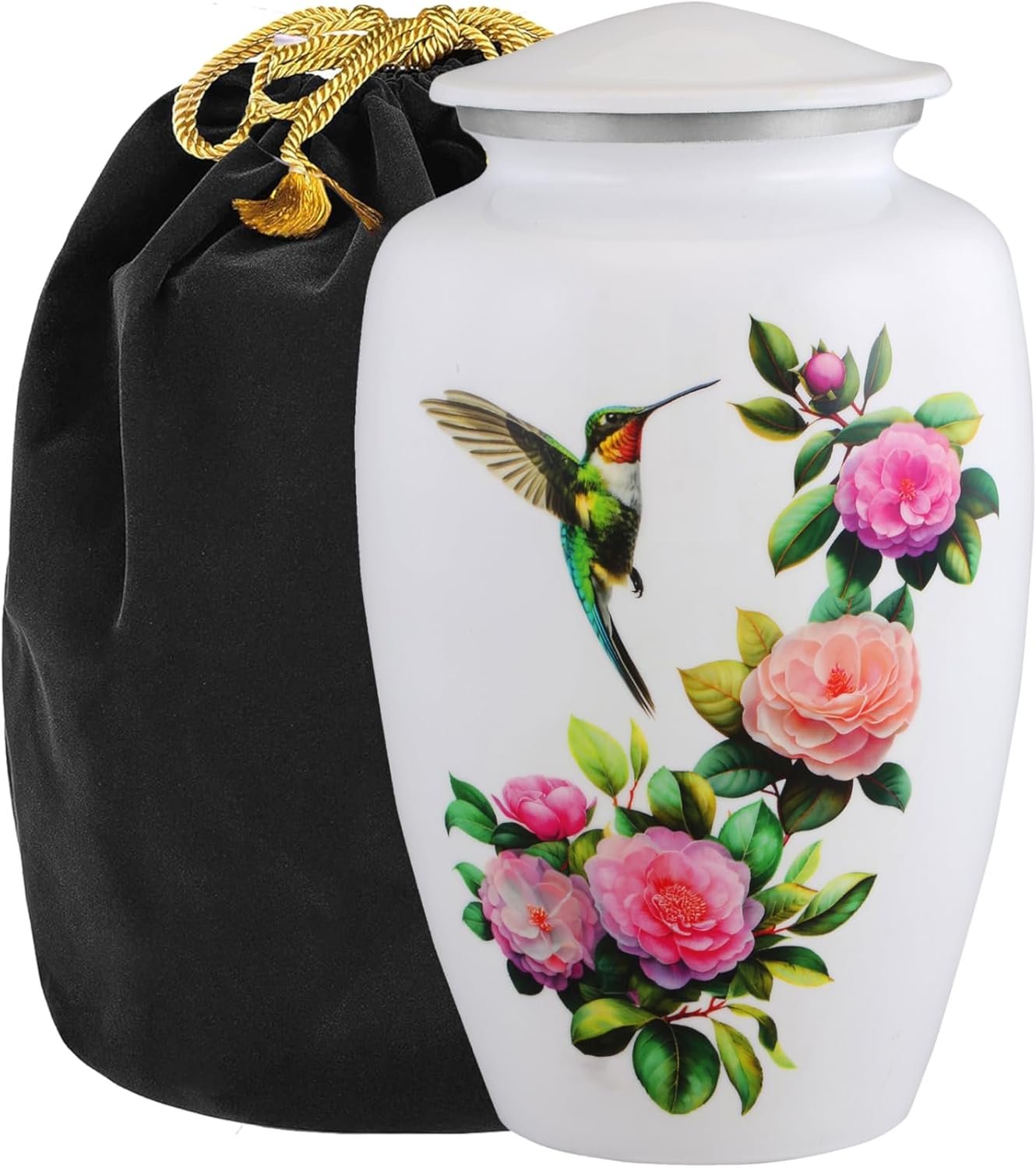 QAULITY PRODUCT: When you lost someone close to your heart you need a high quality Humming Bird cremation urn to hold their ashes. This stunning cremation urn is handcrafted to give your loved one’s remains the superior quality they deserve. DURABLE & DIMENSIONS: This beautiful Cremation Urns for Human Ashes is made up of Solid Metal & It color coating is being protected by starch less Enamel Lacquer. This adult urn is 10.25 inches tall 6 inches wide & 6 inches large. Capacity of 200 cubic inches, capable of holding the remains of a 220lb person. INSTRUCTIONS: SCREW- TOP LID provides a reliable and secure seal that will keep your loved ones ashes stored inside the container even if it is dropped. HAND CRAFTED WITH A STRACH LESS ENAMEL FINISH: The superior craftsmanship and materials that have gone into making this cremation urn ensures the ashes of your loved one are completely protected and given the upmost of respect. FREE VELVET BAG: A free velvet bag is being included with this beautiful urn to protect it.