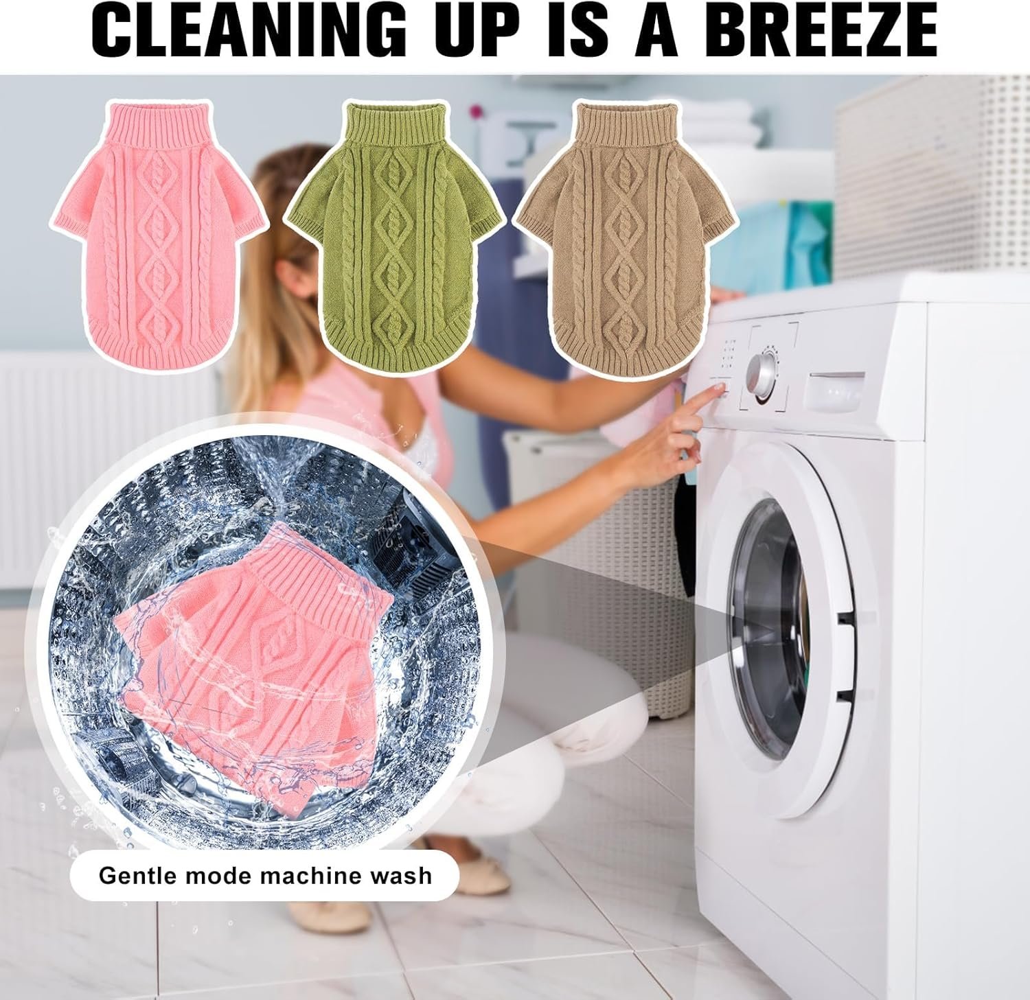 Functional Design: Machine washing. The Knitted coat is doggy friendly with turtleneck pullover design that can fully wrap your pet’s neck, chest and belly snugly- convenient for pets to do business without without getting the clothes dirty-tested on our pet models to ensure the best fit