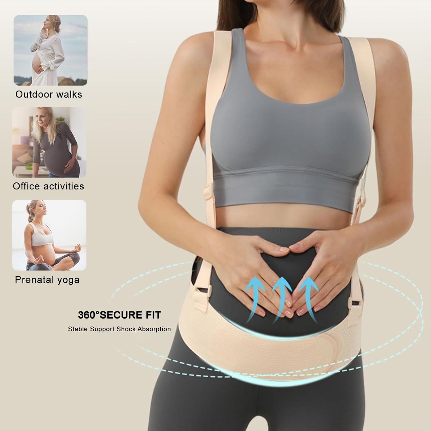 【Pregnancy Belly Band 360° Dynamic Abdominal Support】This 3D Belly Support design maternity support belt is crafted with a scientifically 360° ergonomic structure that provides dynamic, all-around support to your growing baby bump.The belly support belt’s unique stabilizing support and shock-absorption system gently cradles the abdomen, effectively alleviating discomfort caused by movement, walking, or sudden jolts.