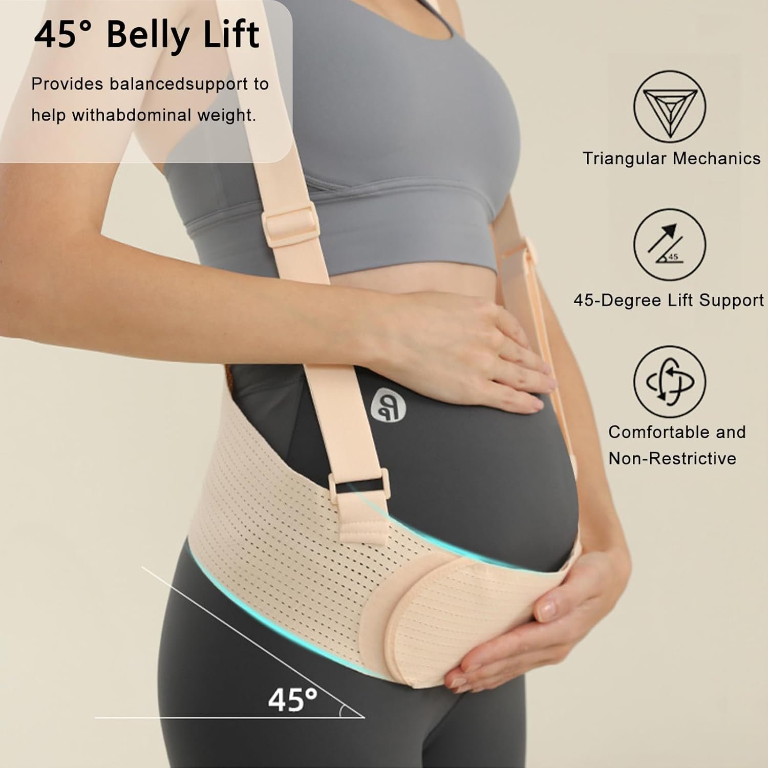 【Ergonomic Design & Pressure Relief】The Maternity Belly Band with Belt utilizes a 45-degree support angle and triangular biomechanical principles.The pregnancy belly band provides precise support to significantly reduce pressure on the lower back and abdomen, effectively alleviating common pregnancy discomforts such as sciatica, round ligament pain, and lower back soreness, thereby enhancing daily comfort.