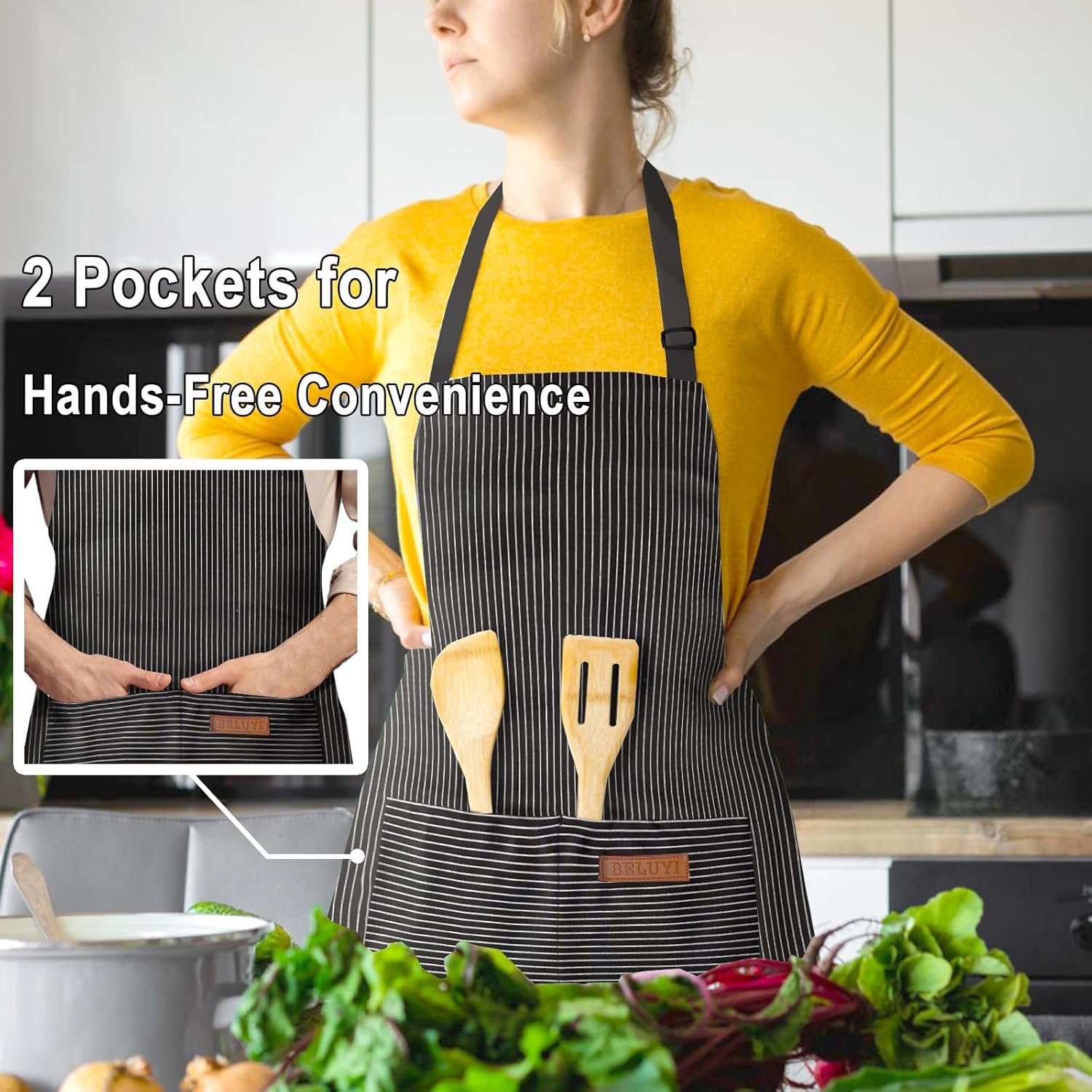 BeLuyi Adjustable Bib Apron with 2 Pockets Chef Cooking Kitchen Restaurant Aprons for Women Men