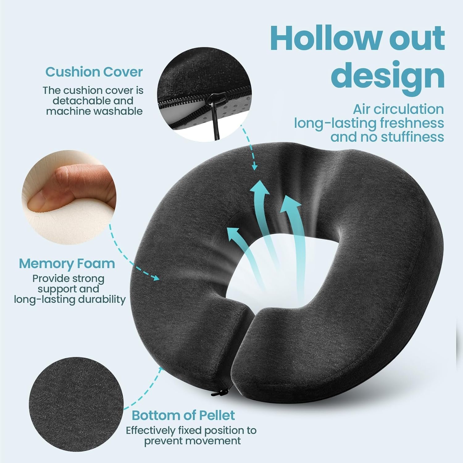【Comfortable Memory Foam】Crafted from premium quick-rebound memory foam, our donut cushion offers exceptional support and retains its shape through repeated use, providing consistent protection for your health.