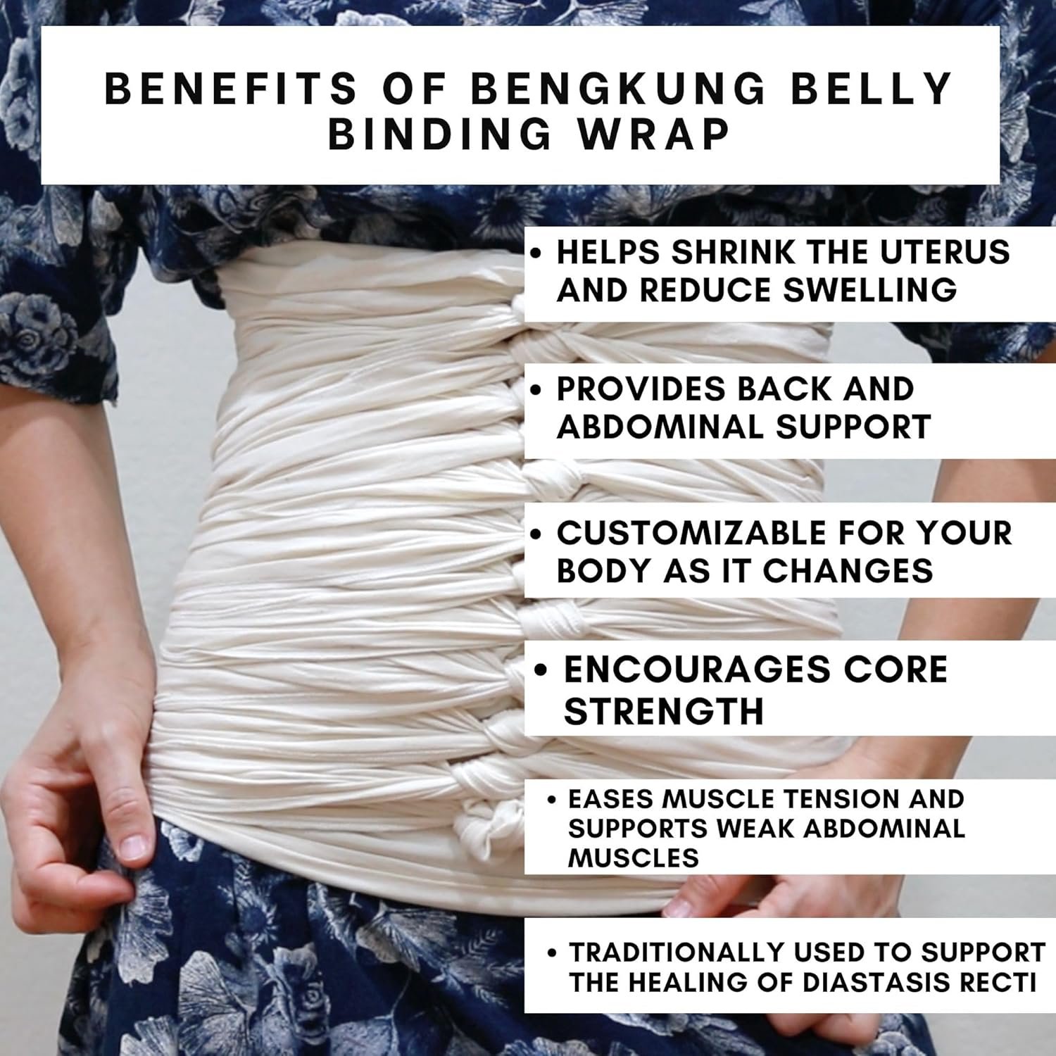 POSTPARTUM SUPPORT: Traditional bengkung belly binding wrap designed to provide gentle compression and support to the abdomen, waist, and hips after childbirth