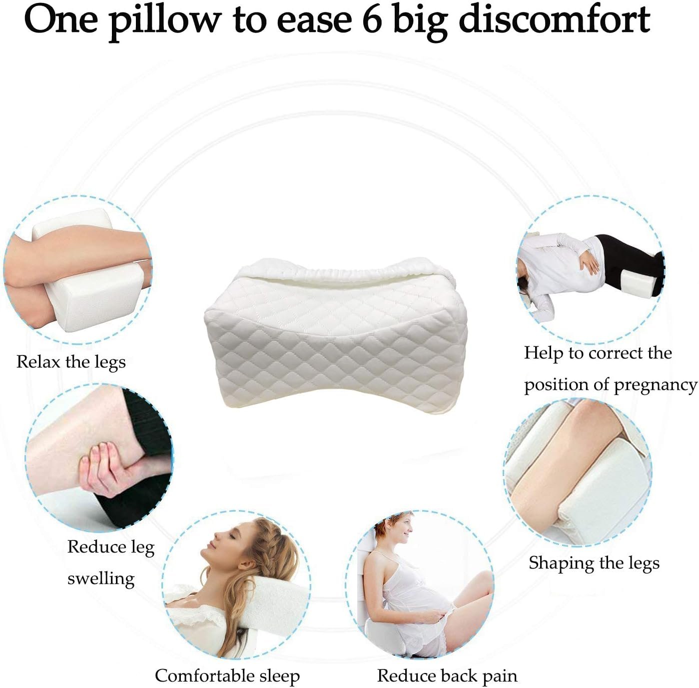 Keeps in place while sleeping Help to Relief Body Pressure during Pregnancy Easy cleaning with a removable and washable cover Soft material, no stimulation, no damage to the skin. Great relief for back pain, knee, hip, ankle and joint pains