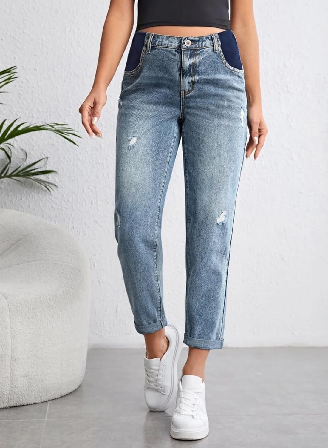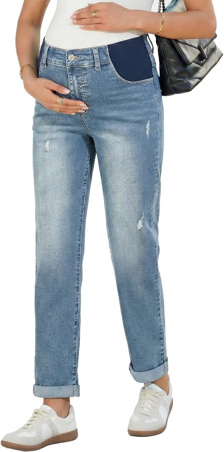 Meet your new pregnancy wardrobe staple: Maternity Jeans designed for comfort, style, and functionality. Made with 72%Cotton+26%Polyester+2%Elastane, our jeans combine breathable cotton with flexible elastane, moving with you as your belly grows. Whether you prefer high-rise over-belly support, adjustable waistbands, or elastic waists, we’ve got you covered for every trimester. Choose from versatile styles—straight leg for office days, wide leg for casual comfort, skinny for a sleek look, or boyfriend for relaxed vibes. Details like cuffed hems, distressed cropped cuts add personality, while built-in pockets offer practical convenience. Perfect for summer strolls, fall workdays, or spring outings, these jeans transition seamlessly between seasons and occasions. Durable denim resists wear and tear, retaining shape and color after multiple washes. Easy to care for and true to size, they’re the go-to maternity pants for busy moms-to-be who refuse to sacrifice style for comfort.