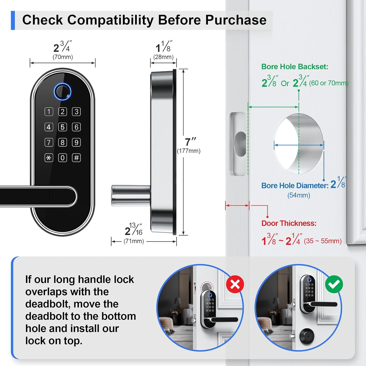 【DIY Installation — Fits Most US Doors】Designed for standard US doors (1-3/8″ to 2-1/4″). Installs in minutes with just a screwdriver. No drilling needed. Perfect for upgrades and rental properties.