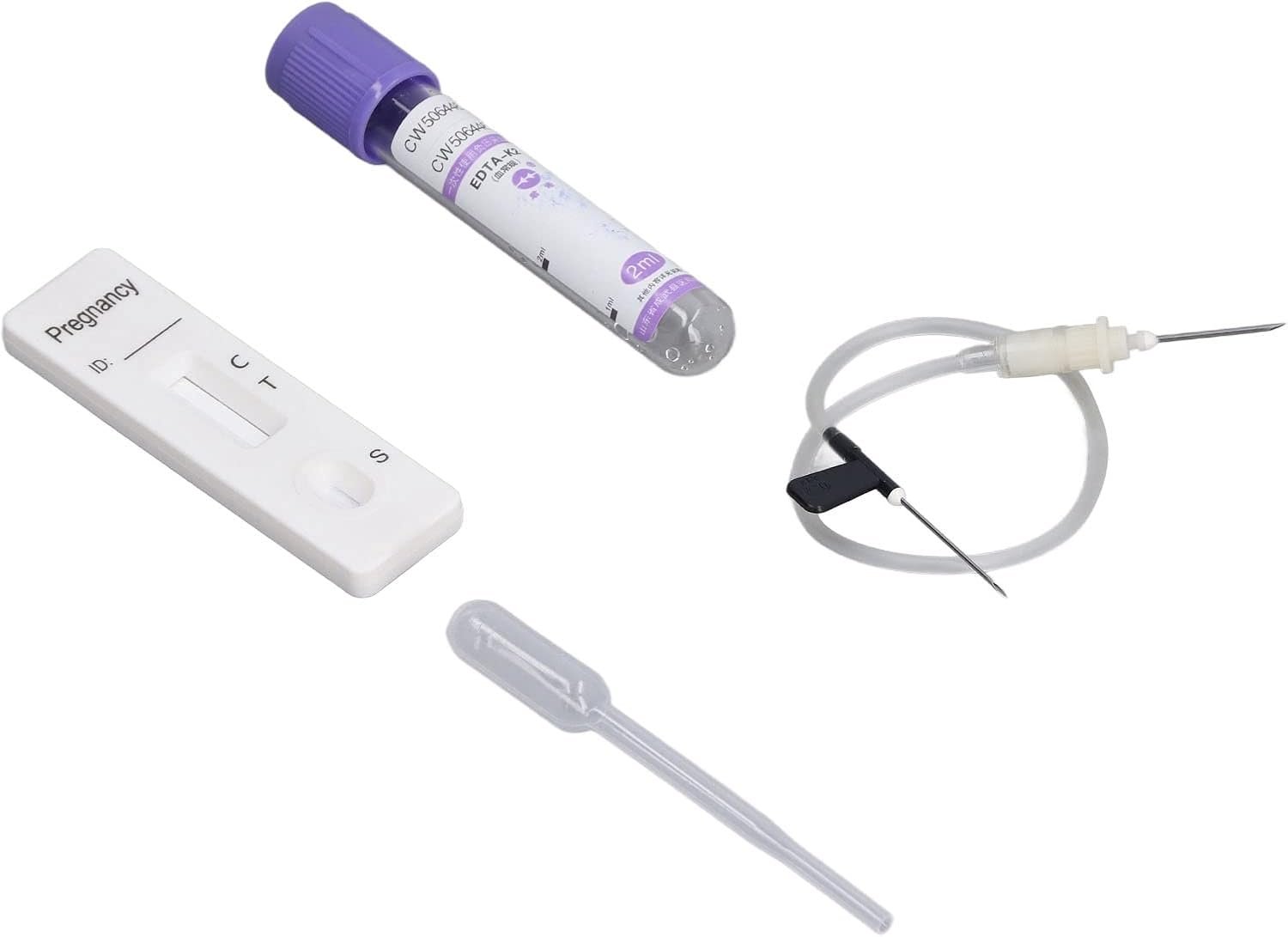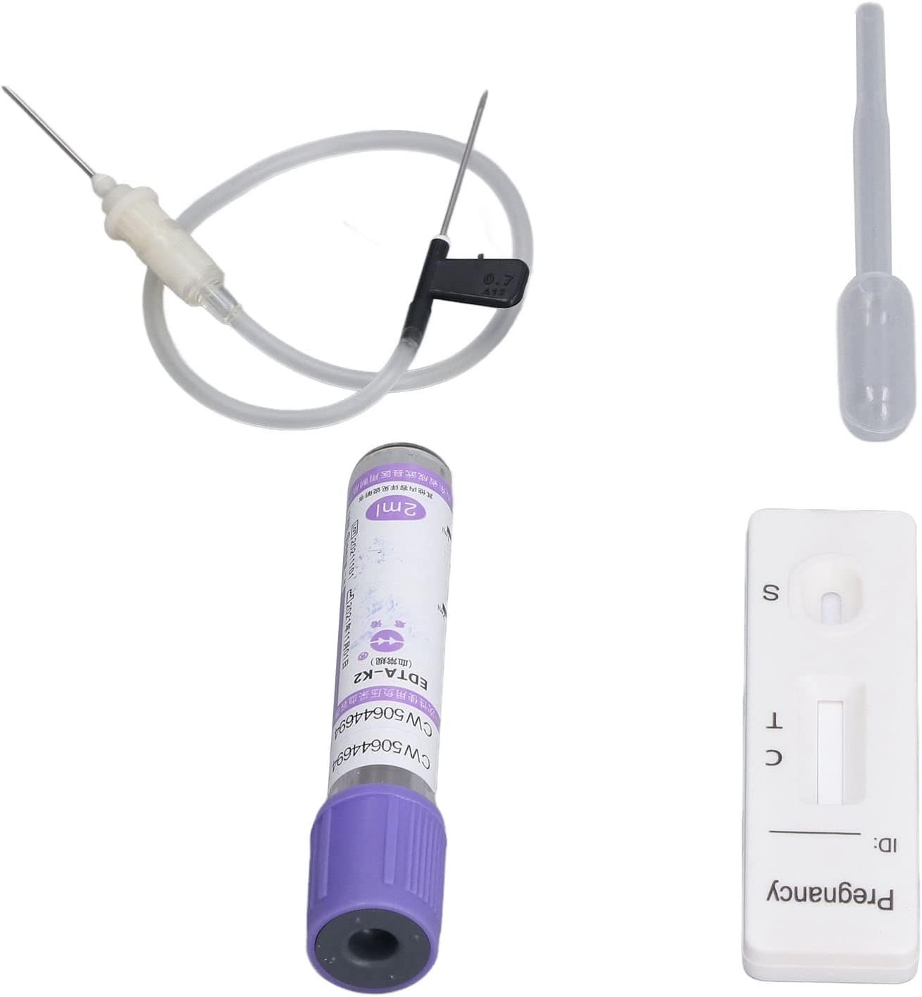 FULLY EQUIPPED: The bovine cow rapid early pregnant pregnancy test kit includes a test card, a dropper, a blood collection tube, and a blood collection needle.