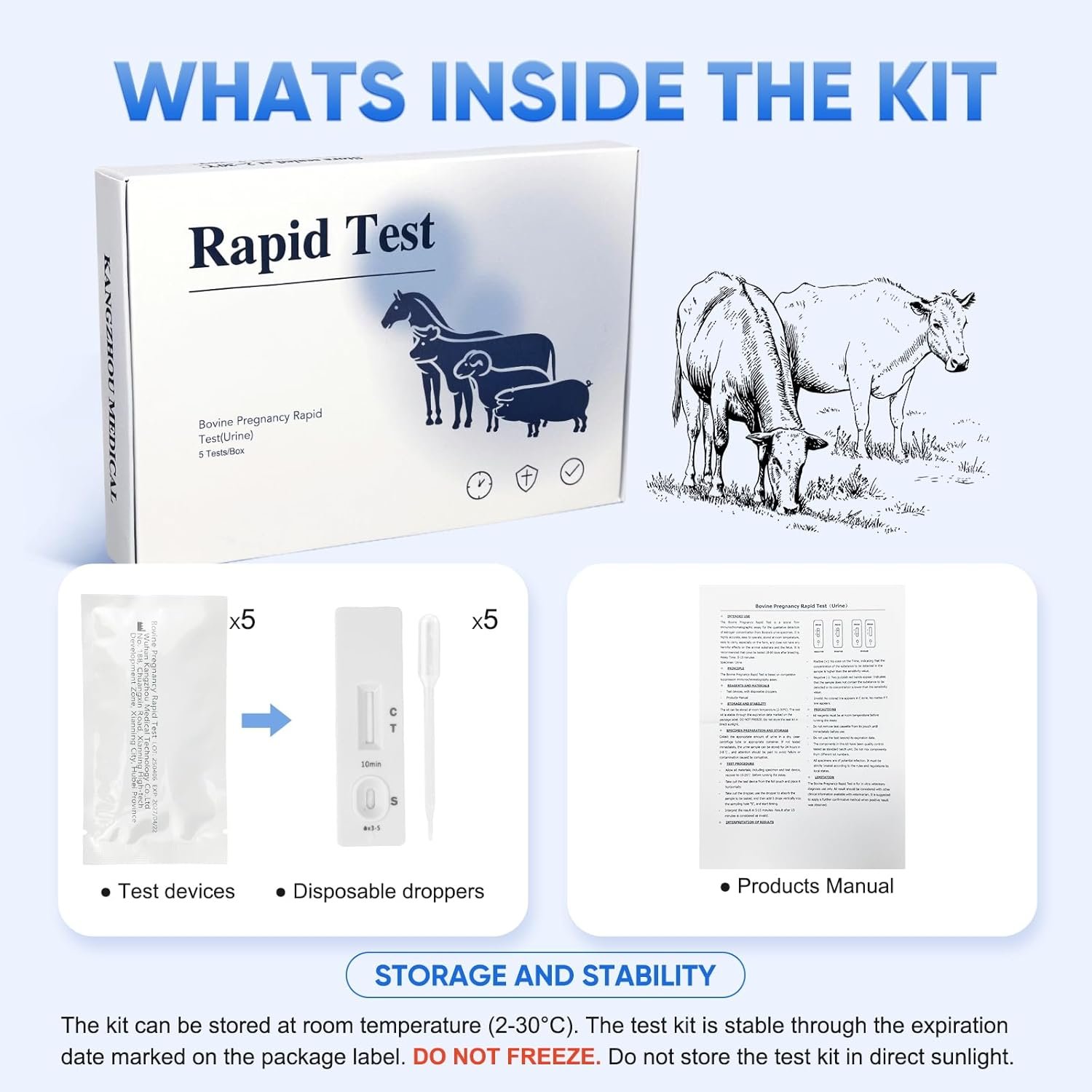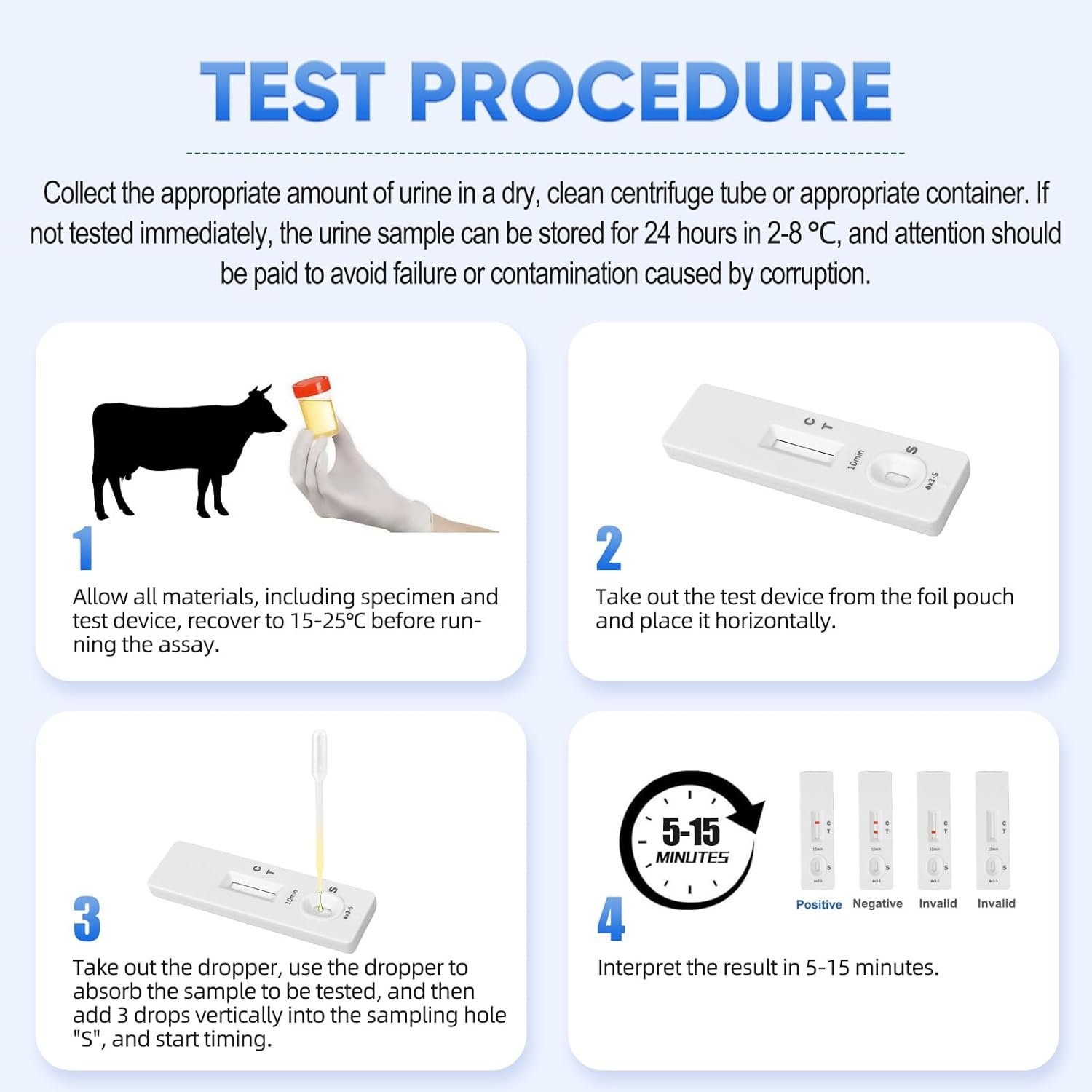 Fast & Easy Farm Use:Get clear results in just 5-15 minutes. The simple process requires only 3 drops of urine—no complex equipment or veterinary expertise needed. Perfect for direct on-farm application