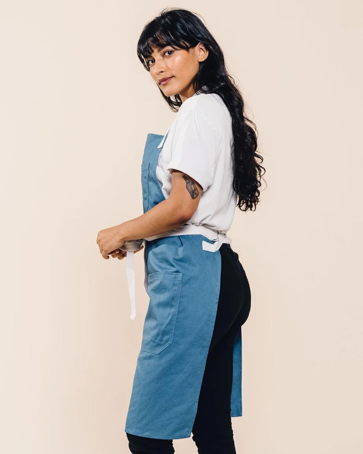 STAY STAIN-FREE: Don’t ruin your favorite clothes in the kitchen — keep clean with this protective bib apron (that goes perfectly with your stylish knife set and kitchen towels).