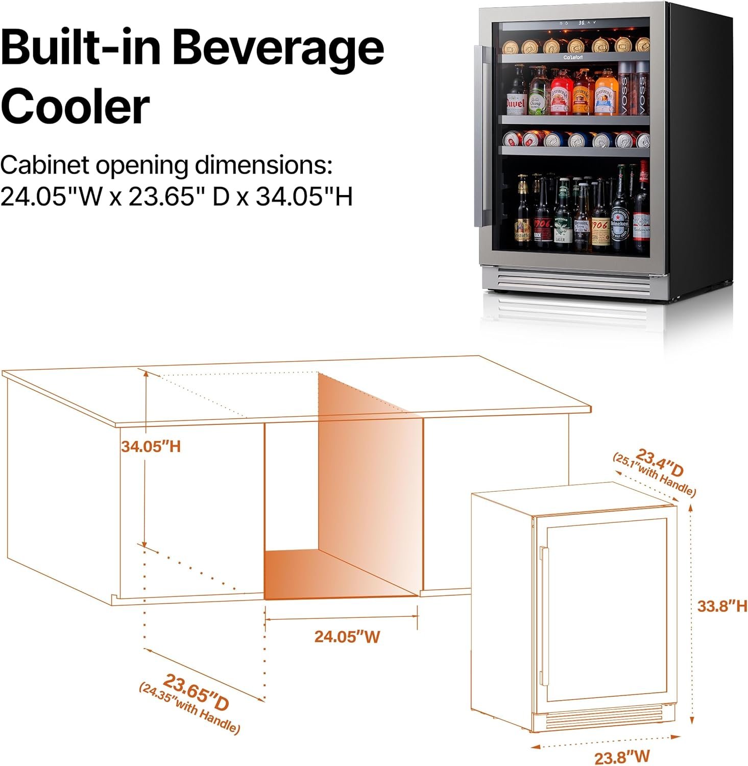 User-friendly Design: Measuring 23.4″D × 23.8″W × 33.8″H, this beverage refrigerator fits easily under most counters or can be used as a freestanding unit in kitchens, home bars, and entertainment spaces. Adjustable leveling feet keep the fridge stable on uneven surfaces. For best performance, let the fridge stand upright for 24 hours before first use. Our support team is available at any time to assist with setup or questions