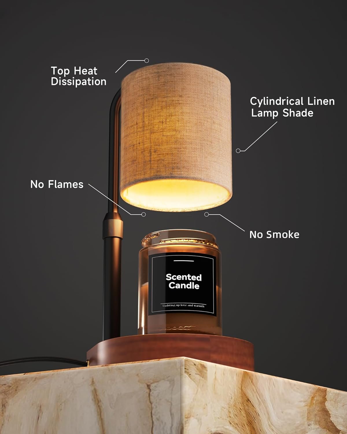 Elegant Design : This Candle Lamp gracefully complements any room—be it your desk, living area, bedroom, kitchen, or bath. Featuring natural linen, warm walnut wood, and sleek black metal, its modern yet timeless aesthetic elevates your decor with simple sophistication.