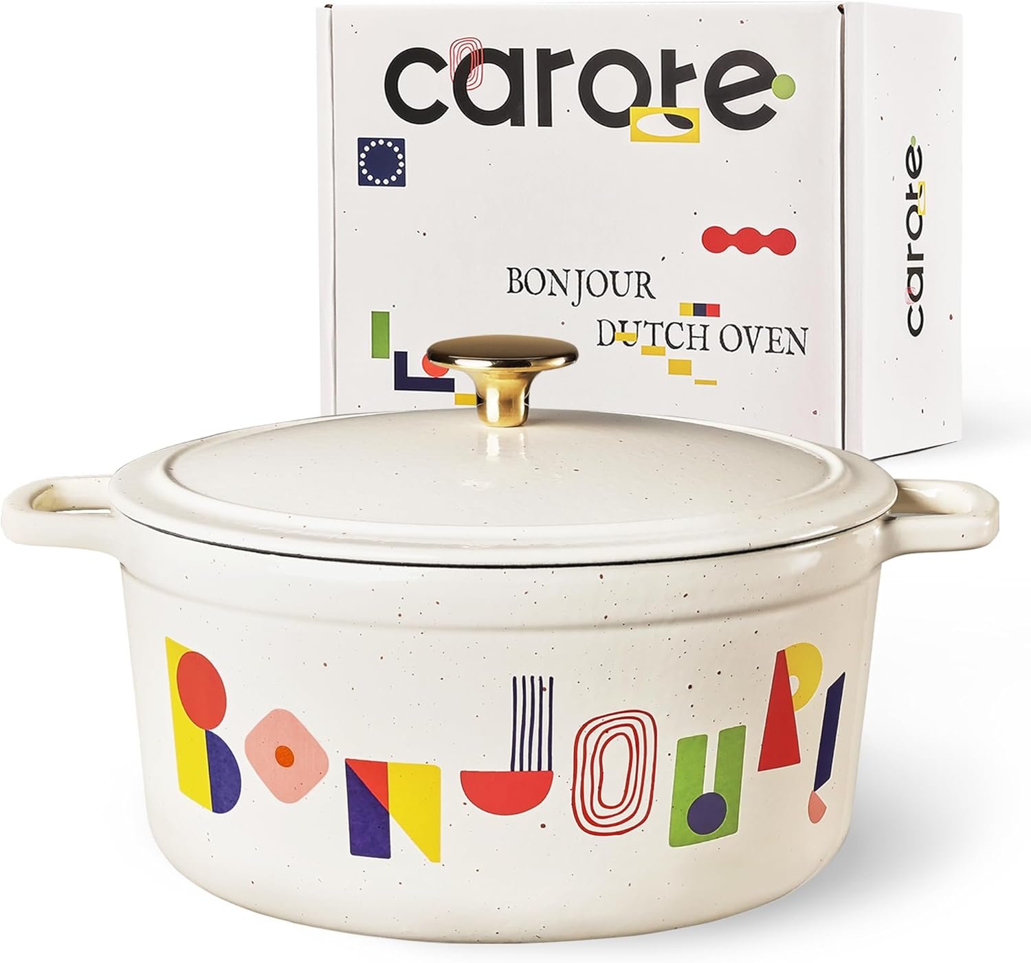 CAROTE 5QT Cast Iron Dutch Oven Pot with Lid, Enameled Floral Dutch Ovens with Gift Box, Versatile Heavy-Duty Cookware for Sourdough Bread Baking, Braising, Stews, Roasting, Healthy & Non-Toxic, All Stovetop Compatible, Oven Safe up to 500° F, Bonjour