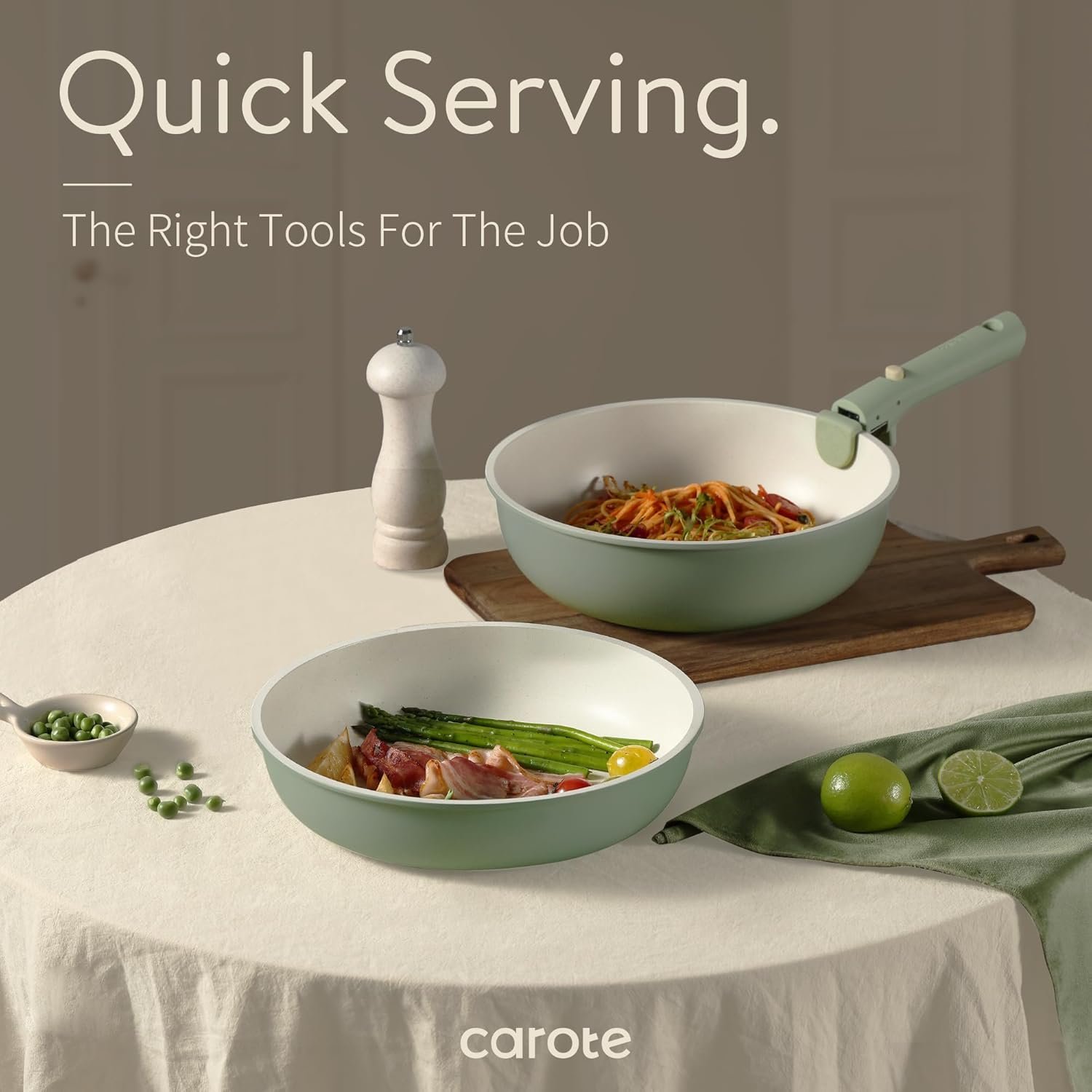 Balanced convenience-rich features, rapid & even heat transfer, and nonstick performance as the same as other Carote cookware sets.