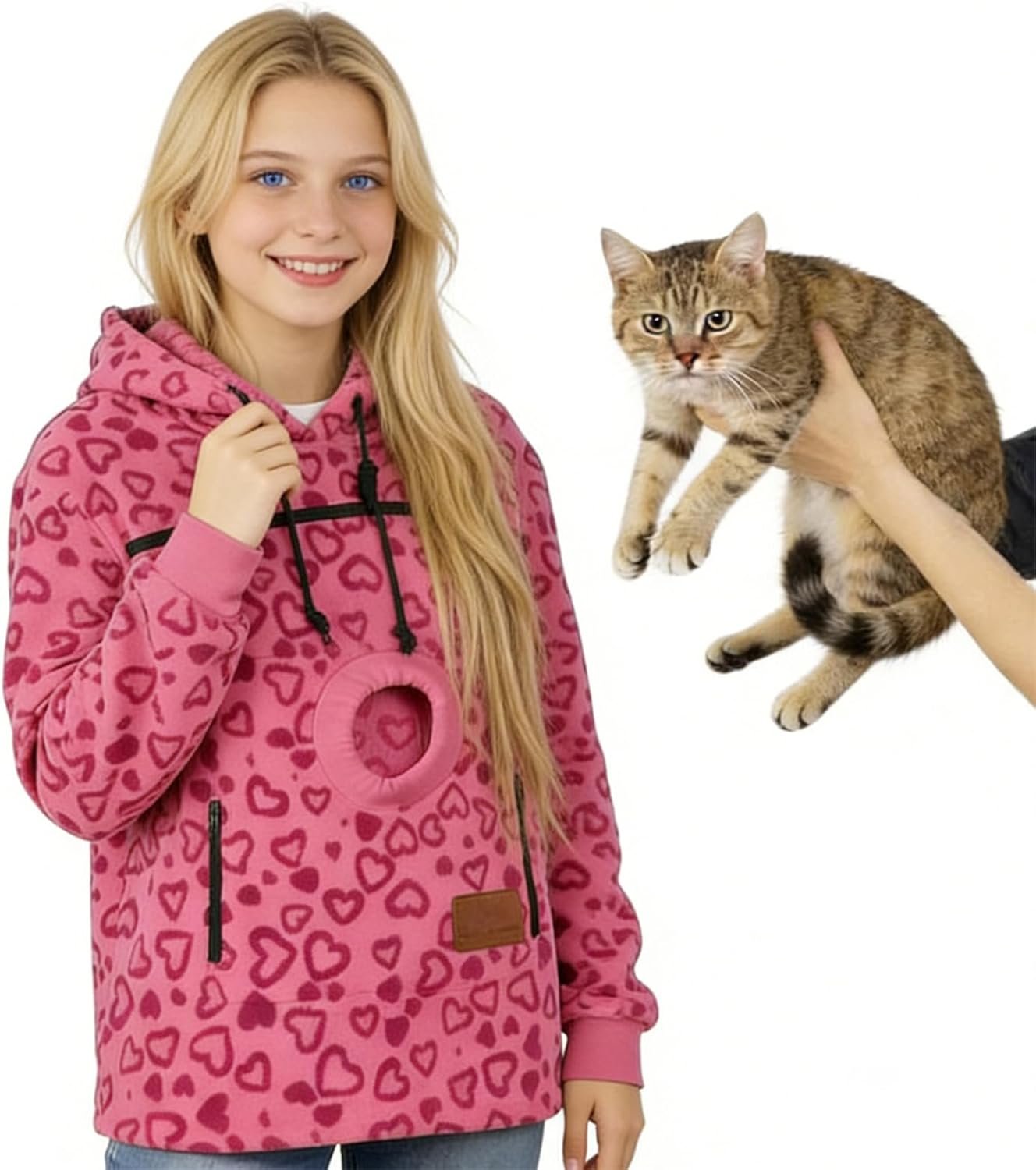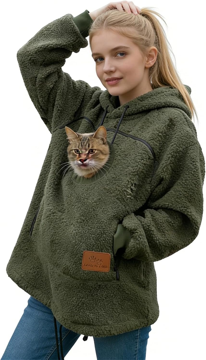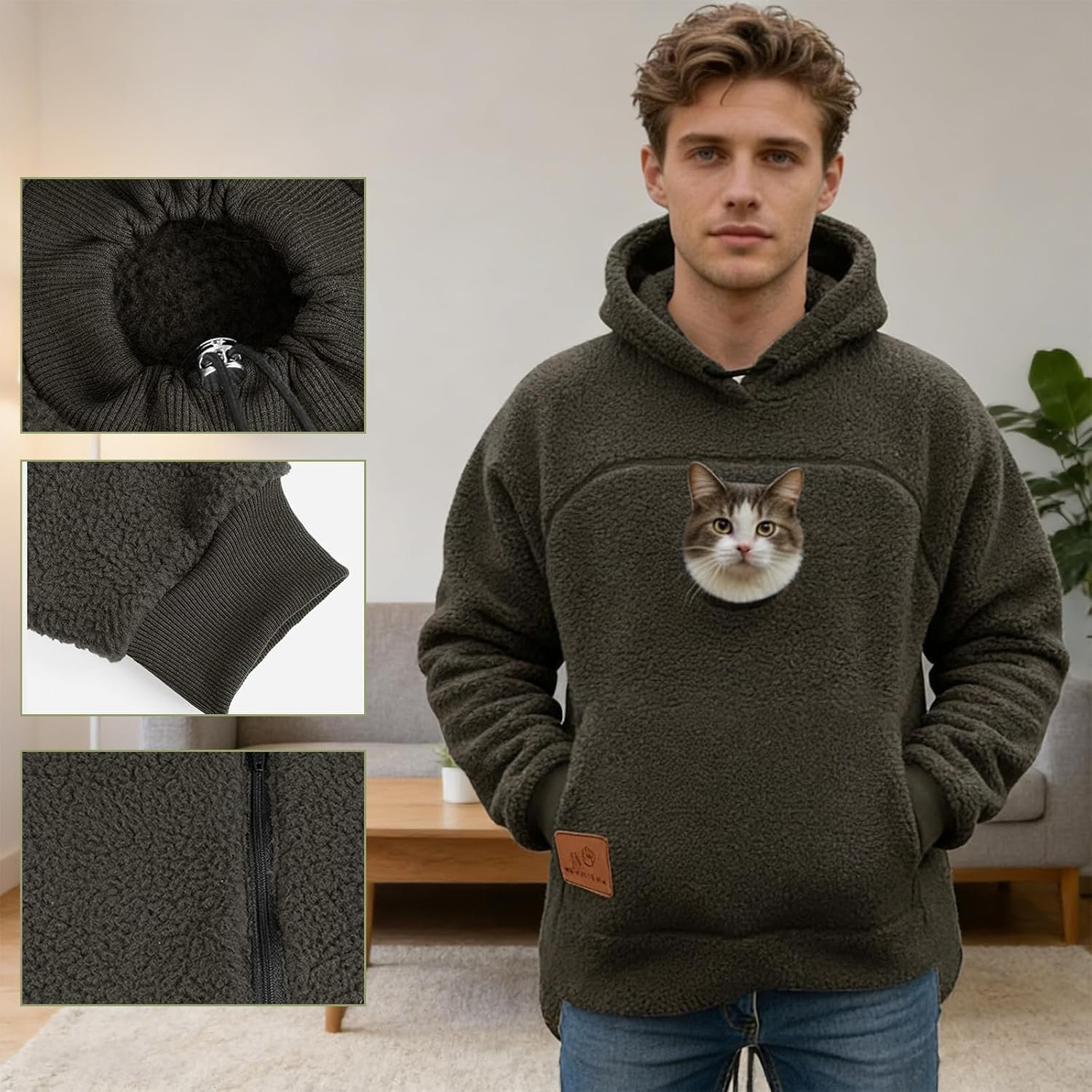 Cat Pouch Hoodie Pet Carrier Hoodie Zipper Kangaroo Pocket Sweatshirt With Pet Pouch Fleece Warm Pet Sweatshirt Outdoor