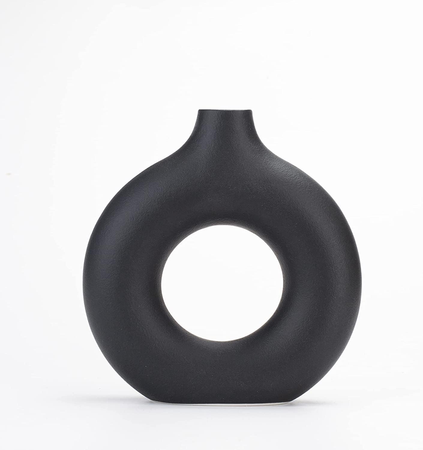 Donut Design: The decorative vase is designed with a unique donut shape that differs from the traditional vase. The hollowed out center makes it not only a flower vase, but also a work of art.