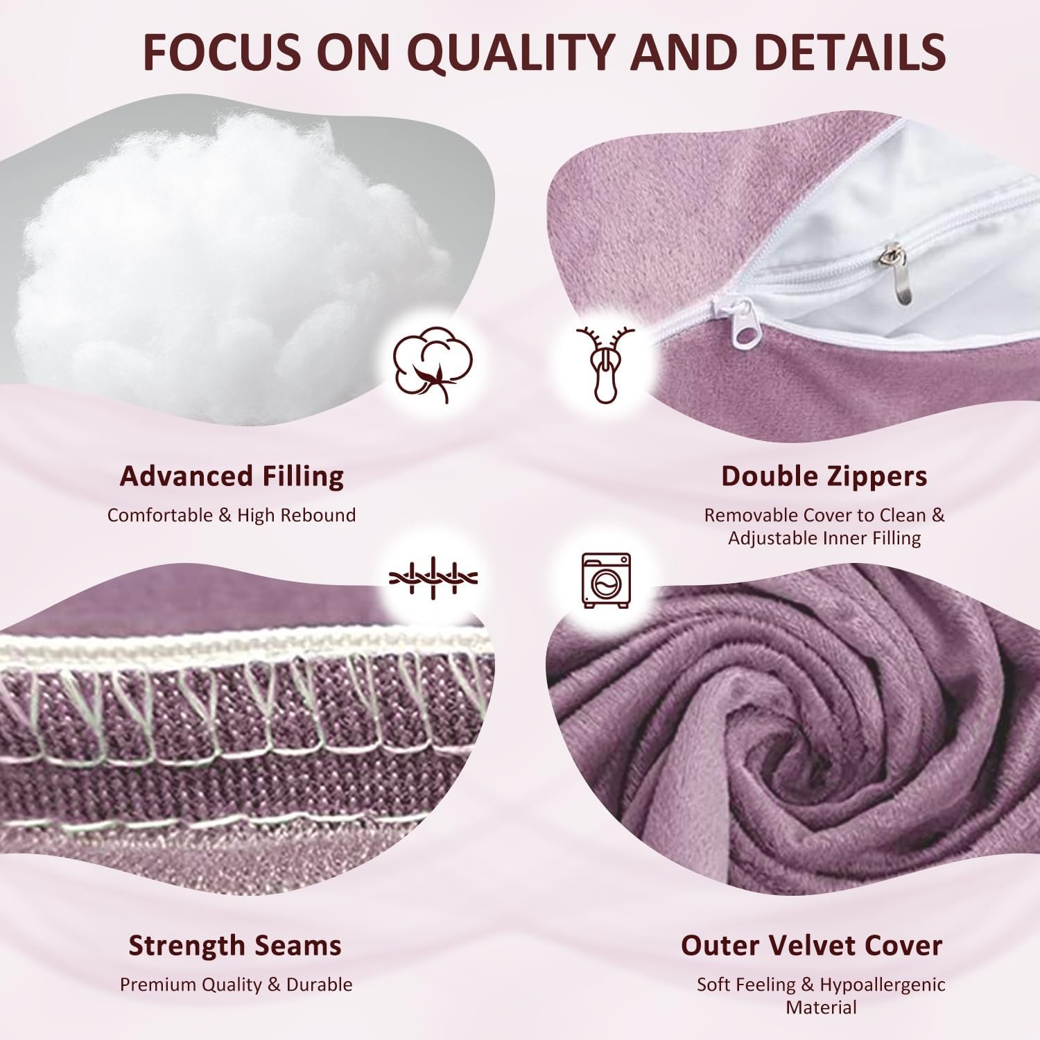 REMOVABLE & WASHABLE PILLOW COVER — This maternity pillow for adults that pregnancy must have as a body pillow for pregnant women with double zippered for easy removal and cleaning. The inner cover zipper allows you to adjust pillow stuffing for preferred height. Even after repeated washing, so you can look forward to long lasting clean comfortable body pillows and simply throw the maternity pillow cover into a normal washing machine and dryer for cleaning.