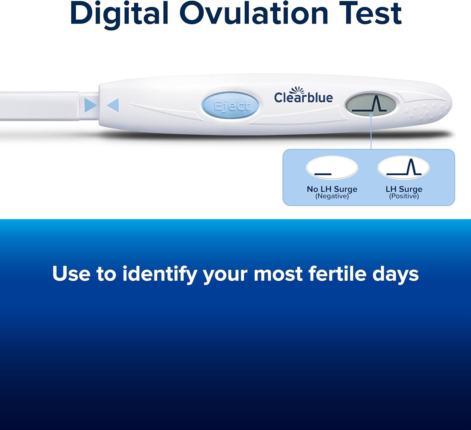 IDENTIFY THE MOST FERTILE DAYS: Use Clearblue Digital Ovulation Tests to identify the surge in luteinizing hormone (LH). This happens 24-36 hours before ovulation to identify your 2 most fertile days