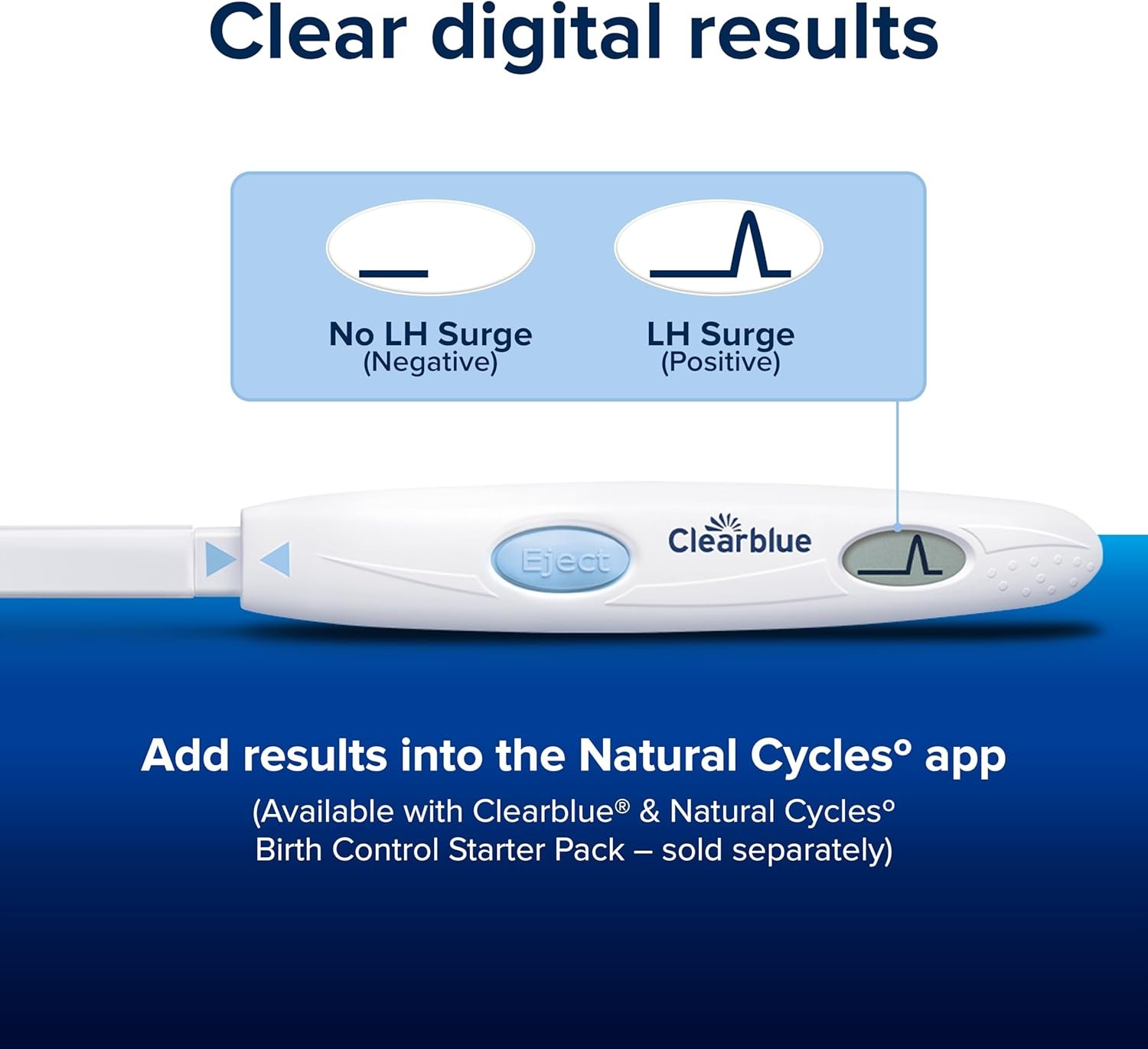 Clearblue Digital Ovulation Test identifies the surge in luteinizing hormone which happens 24-36 hours before ovulation, to identify your most fertile days. On the days you take a test, add your LH results into the Natural Cycles app (available with Clearblue & Natural Cycles Birth Control Starter Pack). Clearblue Digital Ovulation Test is over 99% accurate at detecting the LH surge. Do not use the LH surge result for contraceptive purposes. The Natural Cycles app uses temperature, period, and (optional) ovulation test data to determine your Green Day (‘Not fertile’) or Red Day (‘Use protection’).