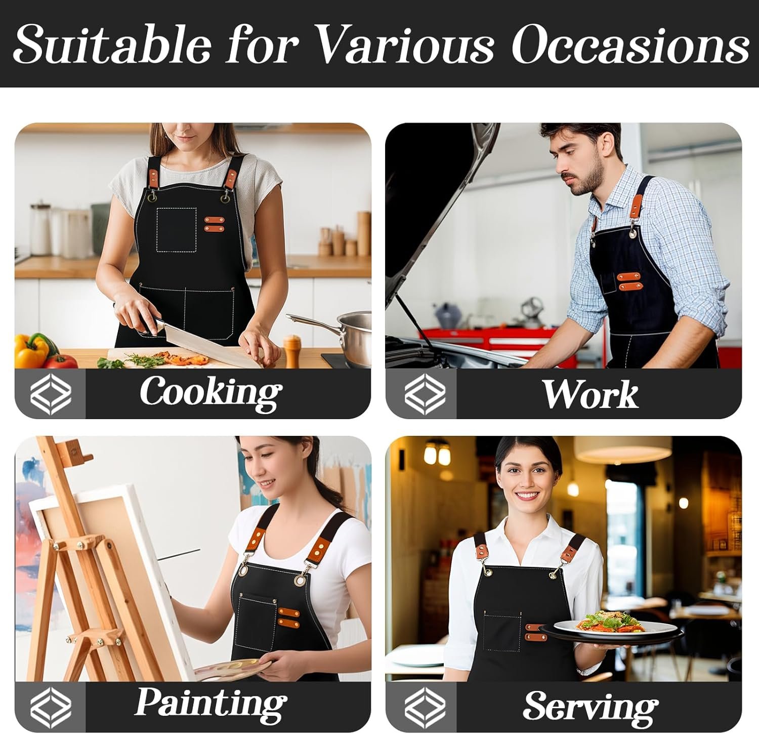 Wide Applicability: This black multifunctional apron can be widely used for service work, cooking, painting, crafts, gardening and more!
