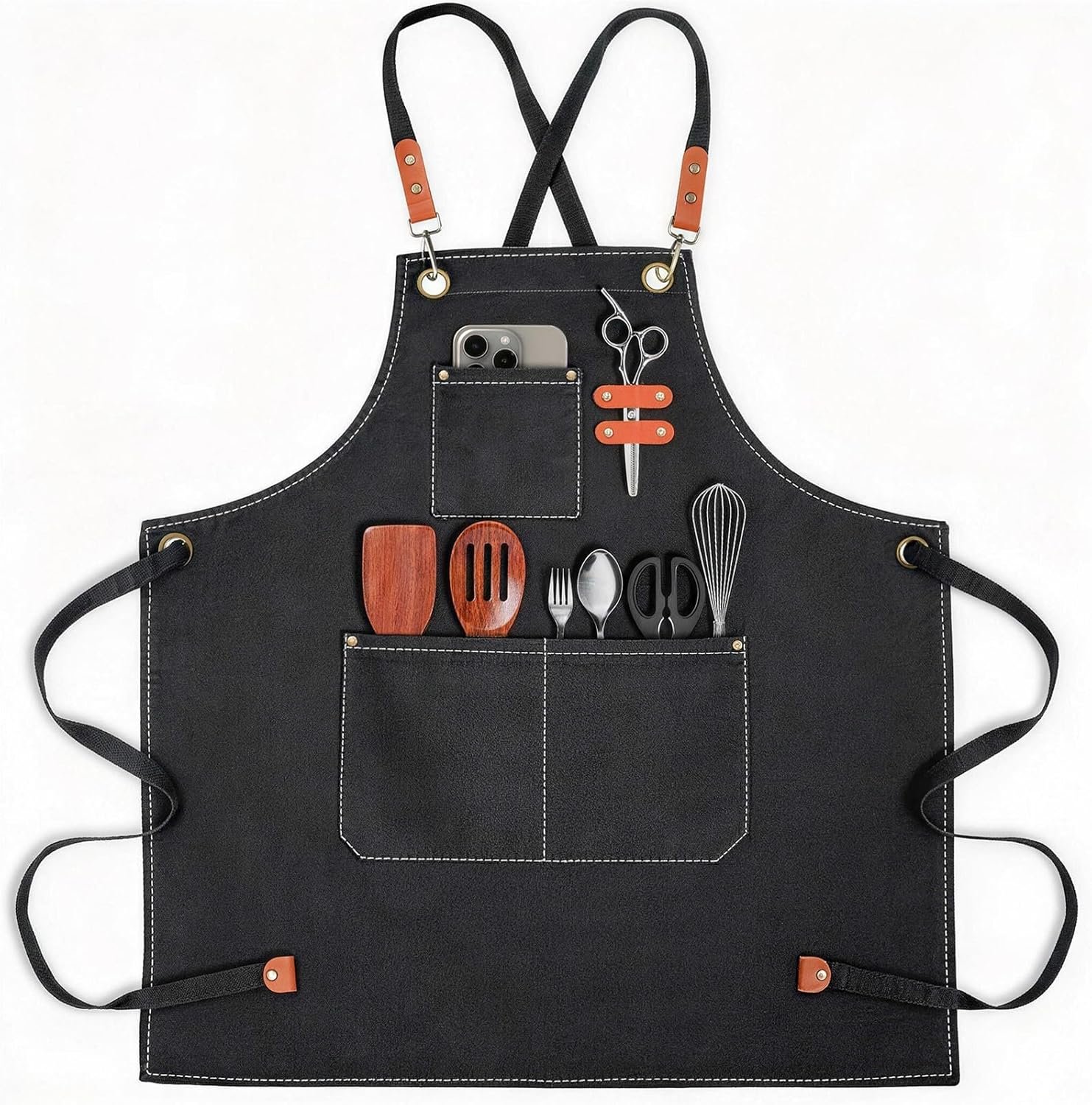 This apron is made of canvas cotton and comes with metal buckles and adjustable cross back straps for multiple uses!